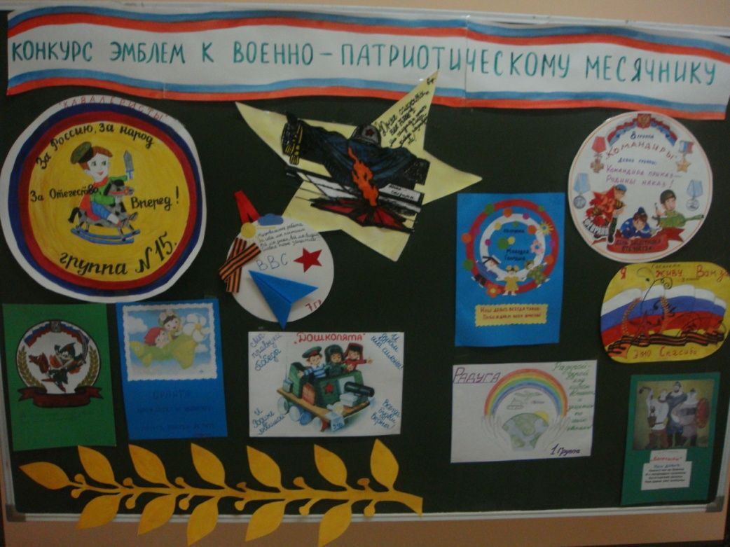 Ребята участвуют в конкурсе среди возрастных групп на лучший девиз и эмблему месячника, в создании выставочных экспозиций, в частности, готовят работы к выставке «Они сражались за Родину» и «Защитники земли русской».
