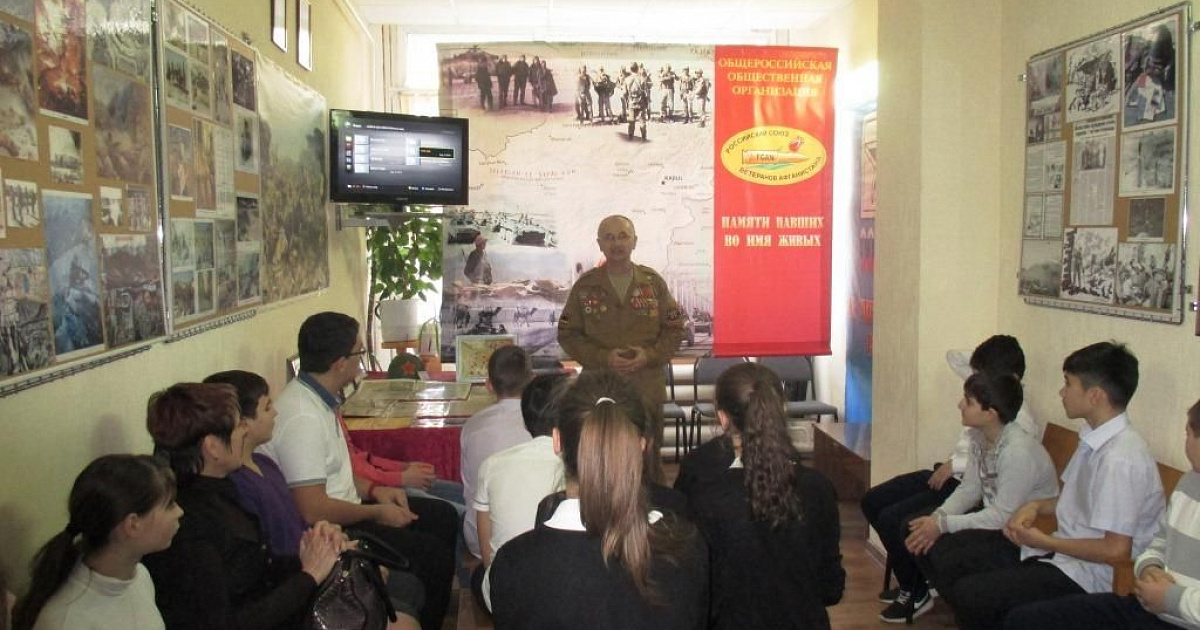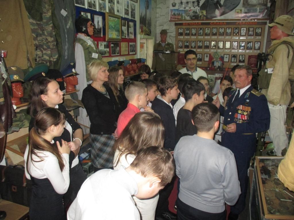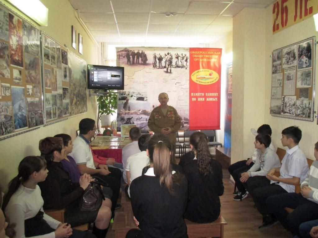 Очередной урок мужества прошел сегодня в рамках месячника по оборонно-массовой и военно-патриотической работе в Прикубанском окружном отделении г.Краснодара КРО ООО «Российский Союз ветеранов Афганистана». 23 учащихся школы №67 вместе преподавателем Гасановой Е.Ю. встретились с ветеранами боевых действий в Афганистане Золочевским П.В. и Таратыновым Н.Г. Воины-интернационалисты провели экскурсию по музею, представили ряд видеофильмов об истории войны в Афганистане. Дети с интересом слушали ветеранов боевых действий, увлеченно делились впечатлениями от увиденного между собой и своим классным руководителем.