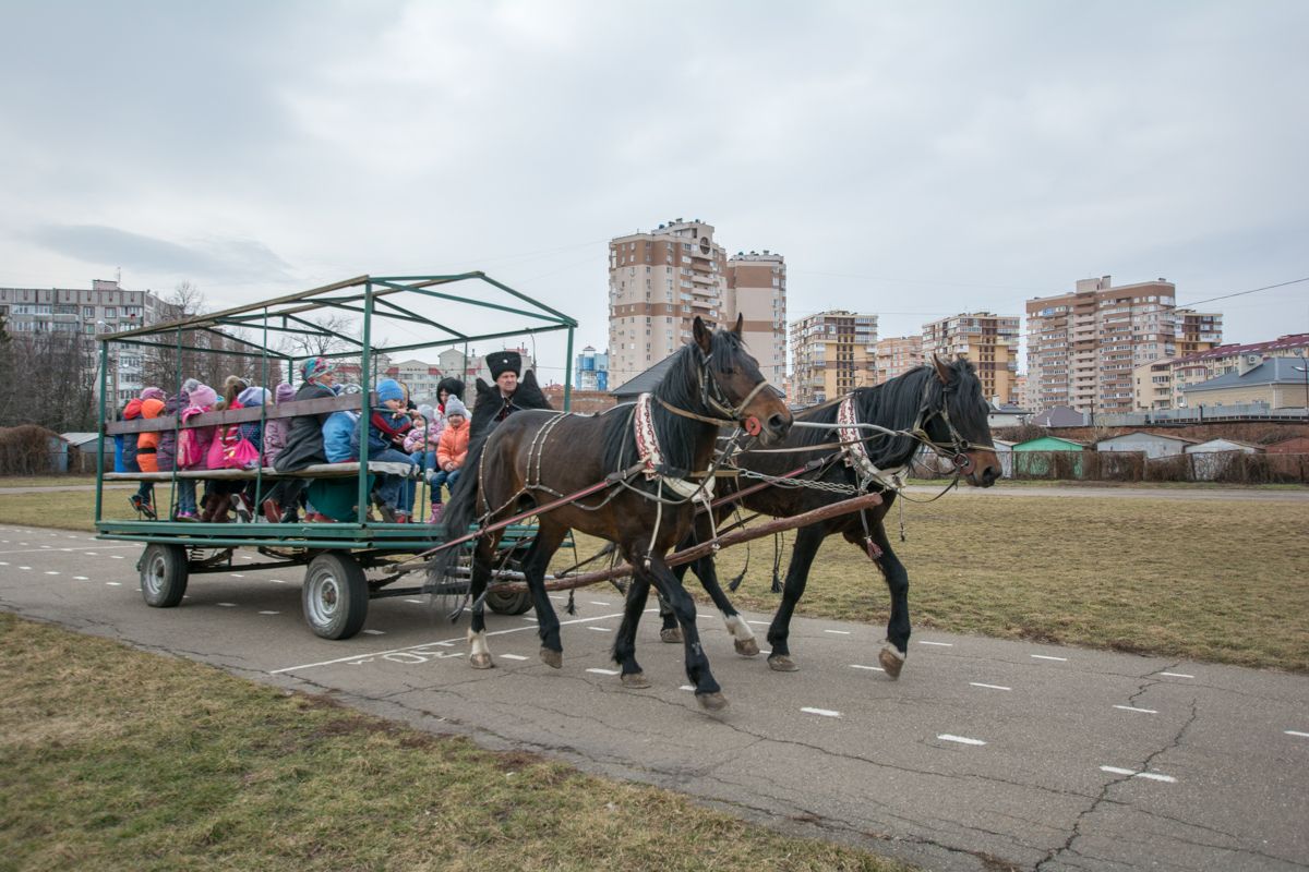 «Краски Масленицы»; мастер - класс Фотоателье «Кубанская красавица»; «Скакалка», «Достань приз»; «Эх, прокачу»; «У мудрой Совы»; «Качели»; «Разгуляй поле»; «Поторгуемся?»; «Блинные гадания». С особым удовольствием все ребята катались на повозке, запряженной лошадьми. Большим успехом пользовалась полевая кухня, где можно было отведать горячую гречневую кашу с тушенкой, блины и сладкий чай. Хозяева куреней радушно встречали гостей вкусными блинами, пирогами, играми, песнями да танцами. Красочное оформление, призы, интересные игры способствовали положительному эмоциональному настрою, и ярким впечатлениям учащихся, родителей и гостей.