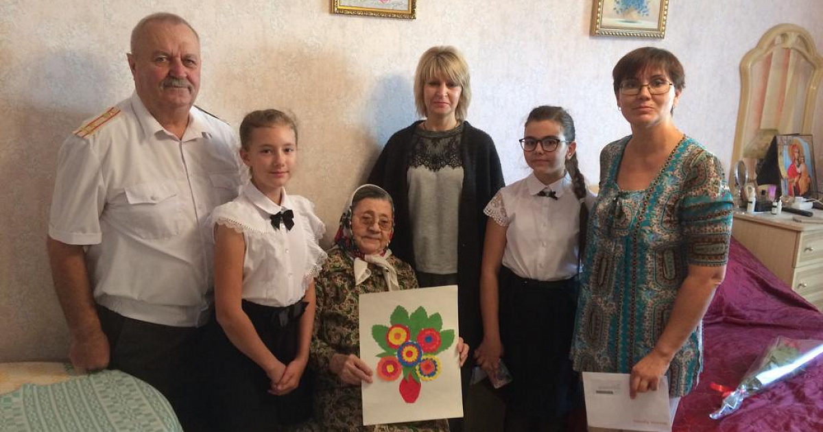 3 октября 2019С юбилеем труженицу тыла поздравили заместитель администрации Калининского сельского округа Ирина Шевченко, заместитель председателя Калининского совета ветеранов Владимир Морозов и ученицы СОШ № 93 и филиала СОШ № 11.