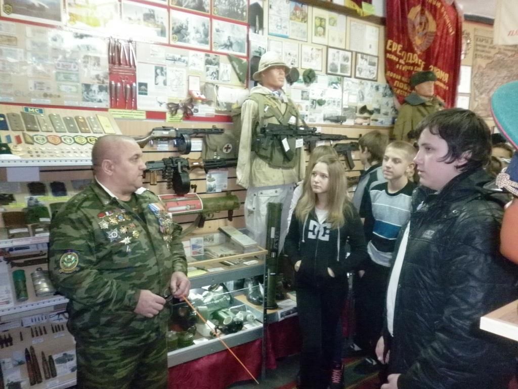 3 декабря 2012По инициативе преподавателей МБОУ СОШ №32 двадцать семь семиклассников из 7 «А» ознакомились с уникальными экспонатами, представленными воинами-интернационалистами.