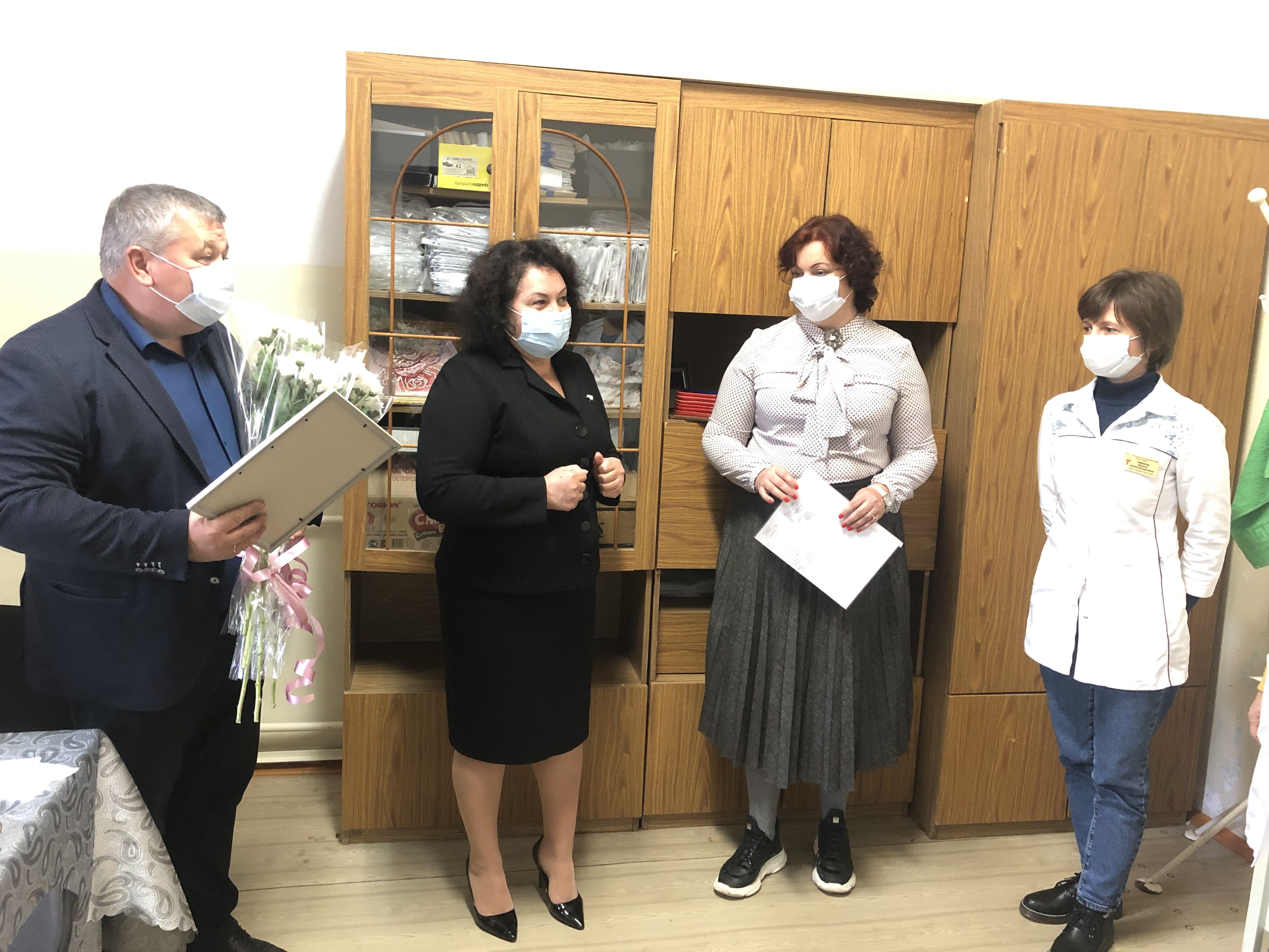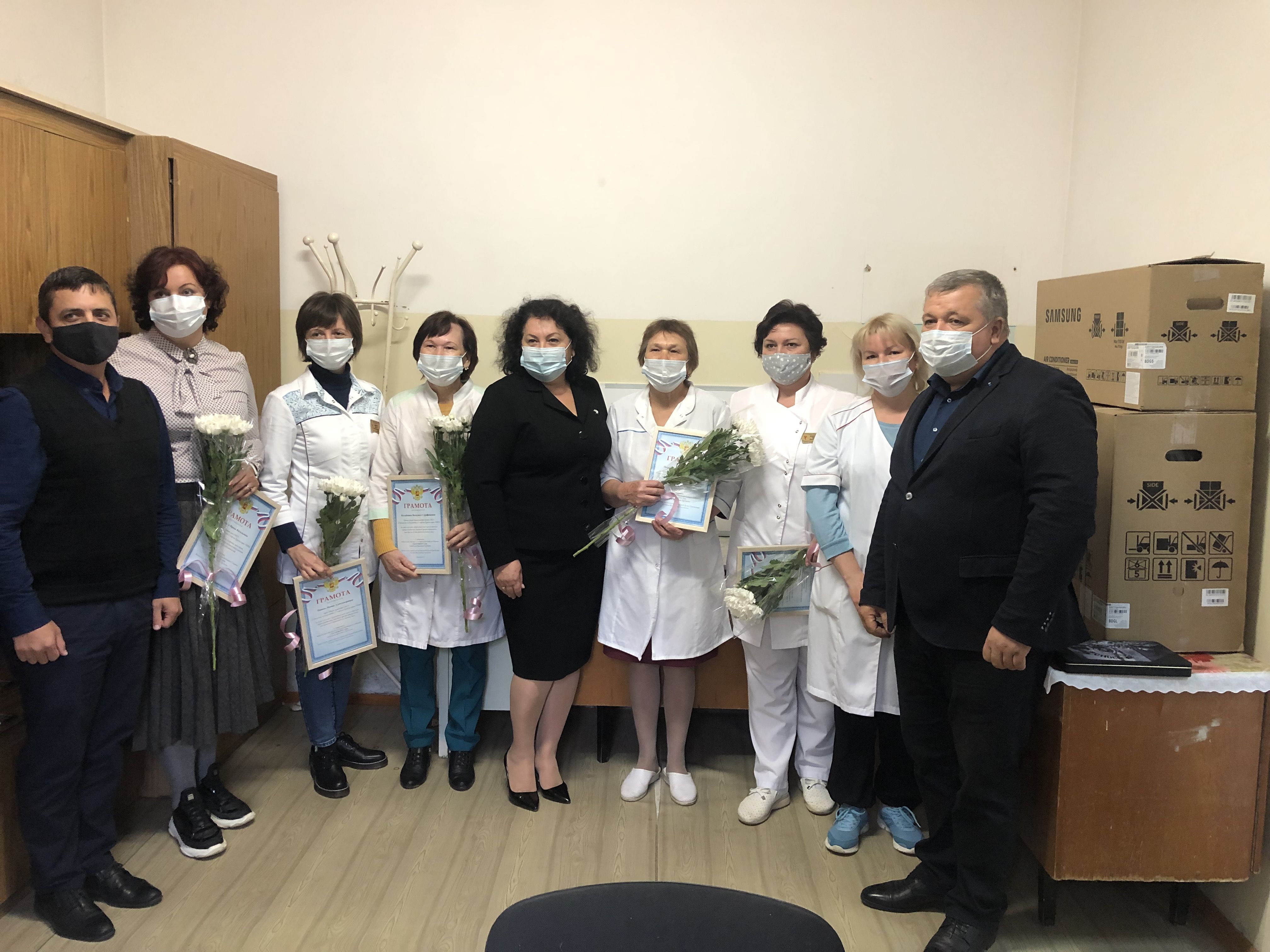 В теплой, дружественной обстановке врачам были вручены грамоты и цветы. Кроме этого по просьбе молодежного актива, возглавляемого Максимом Ладатко, депутатом Законодательного Собрания Краснодарского края Трубилиным Александром Ивановичем был подарен кондиционер. Сплит-система будет установлена в кабинете физиотерапии.