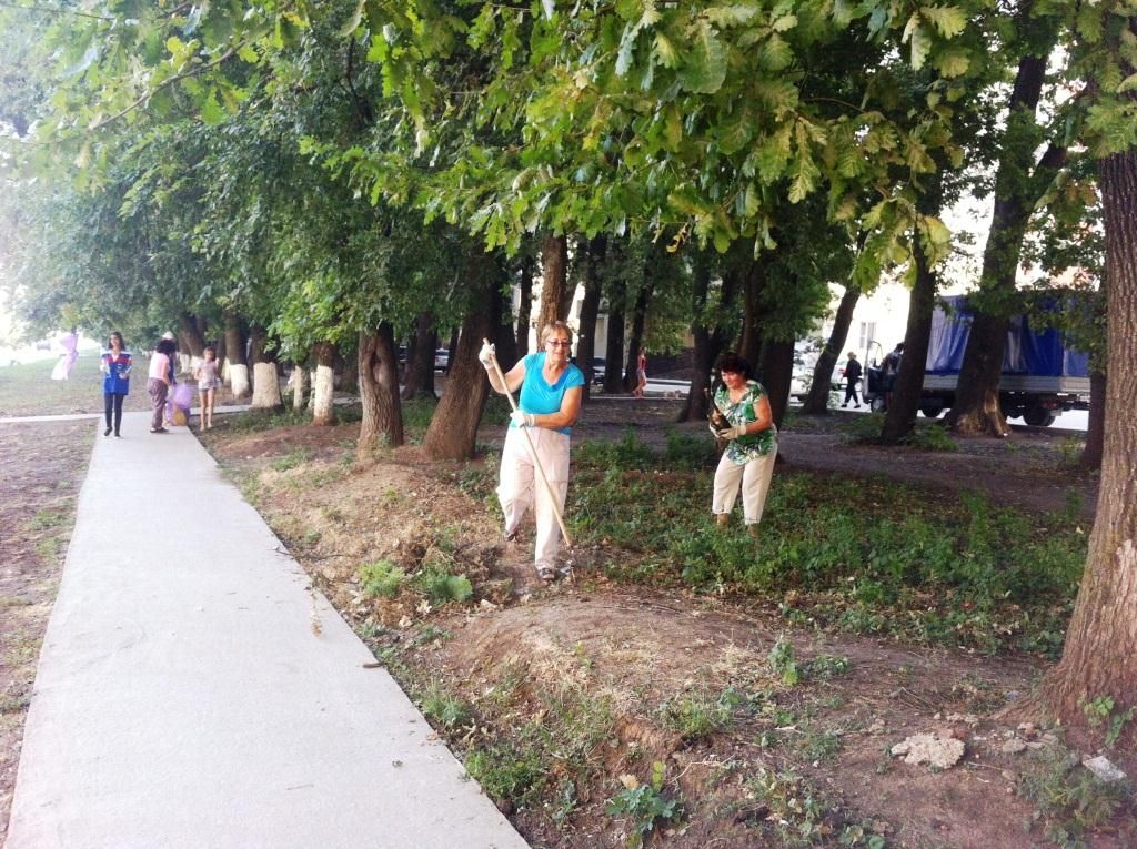 В результате проделанной работы убраны газоны от сгнившей листвы и бросового мусора, скошена амброзия, произраставшая вдоль парковой зоны, подметены тропинки.