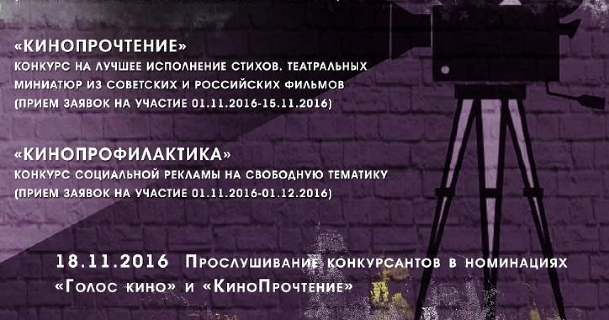 Участниками конкурса могут стать юноши и девушки от 14 до 29 лет. В конкурсе 3 номинации: «Голос кино», «КиноПрочтение», «КиноПрофилактика», в которых ребятам предстоит показать артистизм, вокальные навыки, передать образ киногероев, создать небольшие ролики на социальную тематику.