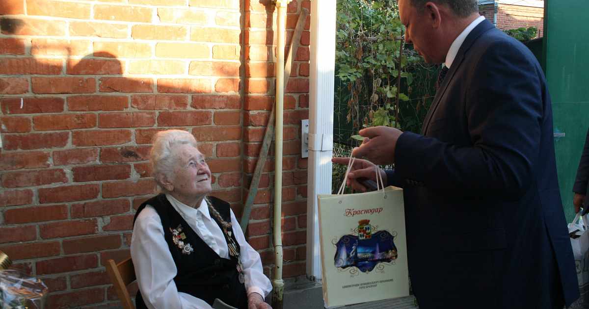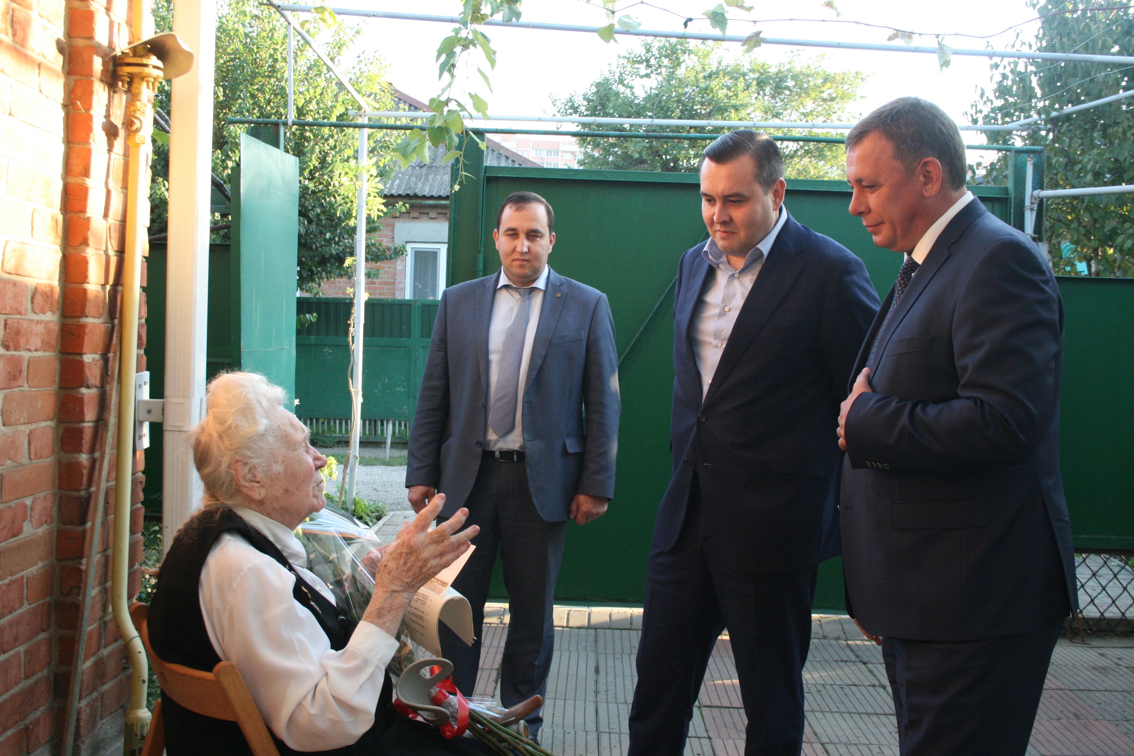Ветерана Прикубанского округа поздравили с 75-летием освобождения Кубани заместитель главы города Виталий Косенко и глава Прикубанского округа Андрей Дорошев