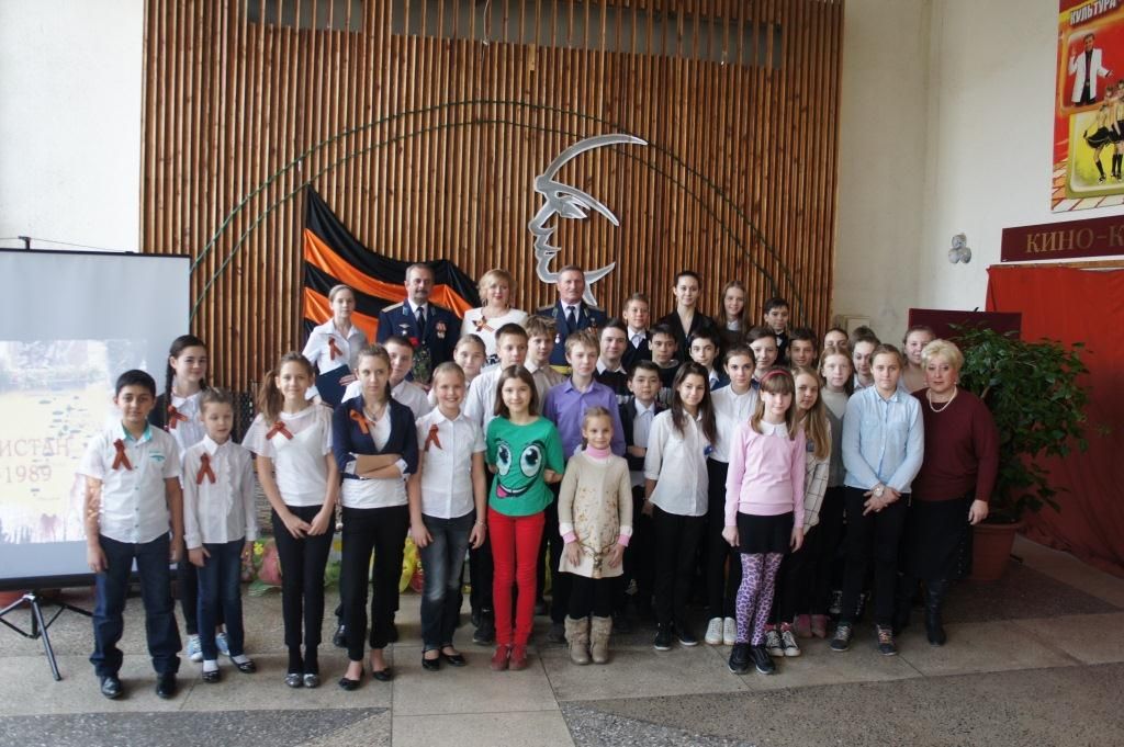 Зрители с удовольствием слушали выступление приглашенных гостей: майора военно-воздушных сил Таратынова Николая Гавриловича и майора военно-воздушных сил Набожинского Николая Антоновича. Работники Центра и ветераны афганской войны твердо уверены в том, что подобные встречи необходимы для воспитания патриотизма у подрастающего поколения. В самом начале мероприятия гости встречи просмотрели документальное видео о событиях в Афганистане, которое было любезно предоставлено председателем правления Прикубанского окружного отделения г.Краснодара КРО ООО «Российский Союз ветеранов Афганистана» Золочевским П.В.