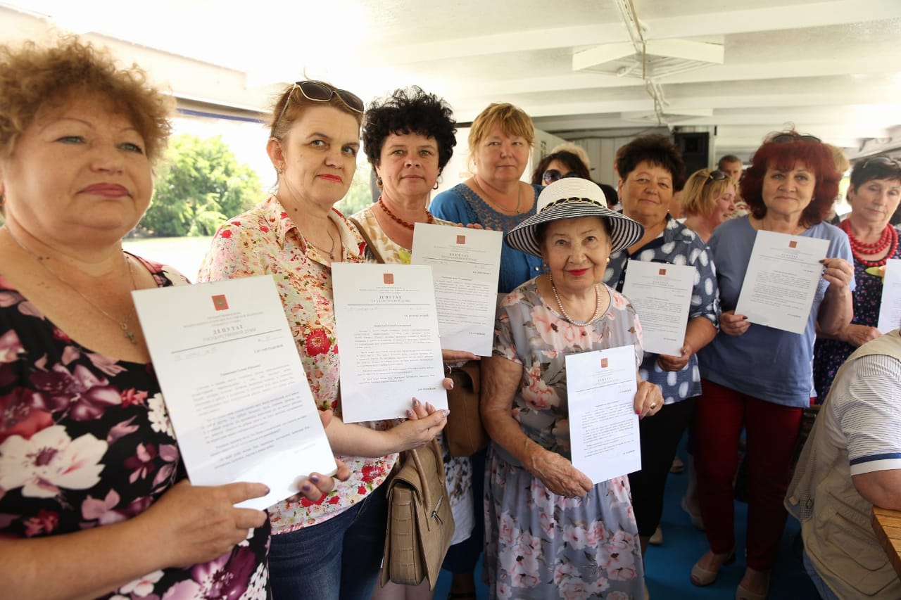 Во время экскурсии представители актива общественности были отмечены благодарственными письмами депутата Госдумы Дмитрия Ламейкина. Не забыли также и об именинниках июня, которые от имени депутата получили подарок.