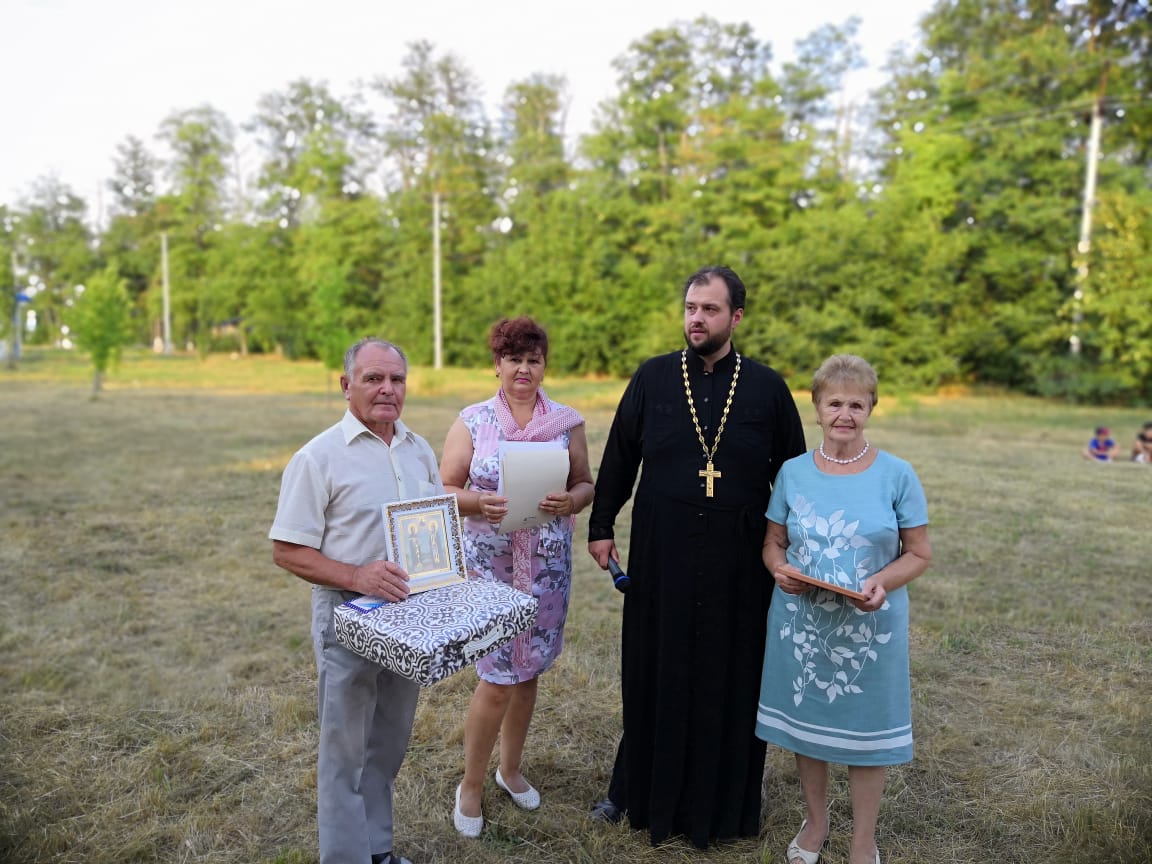 Памятными подарками от иерея Иоанна и депутата Сергея Быкова была отмечена семья Мичуриных – отметившая изумрудную свадьбу.