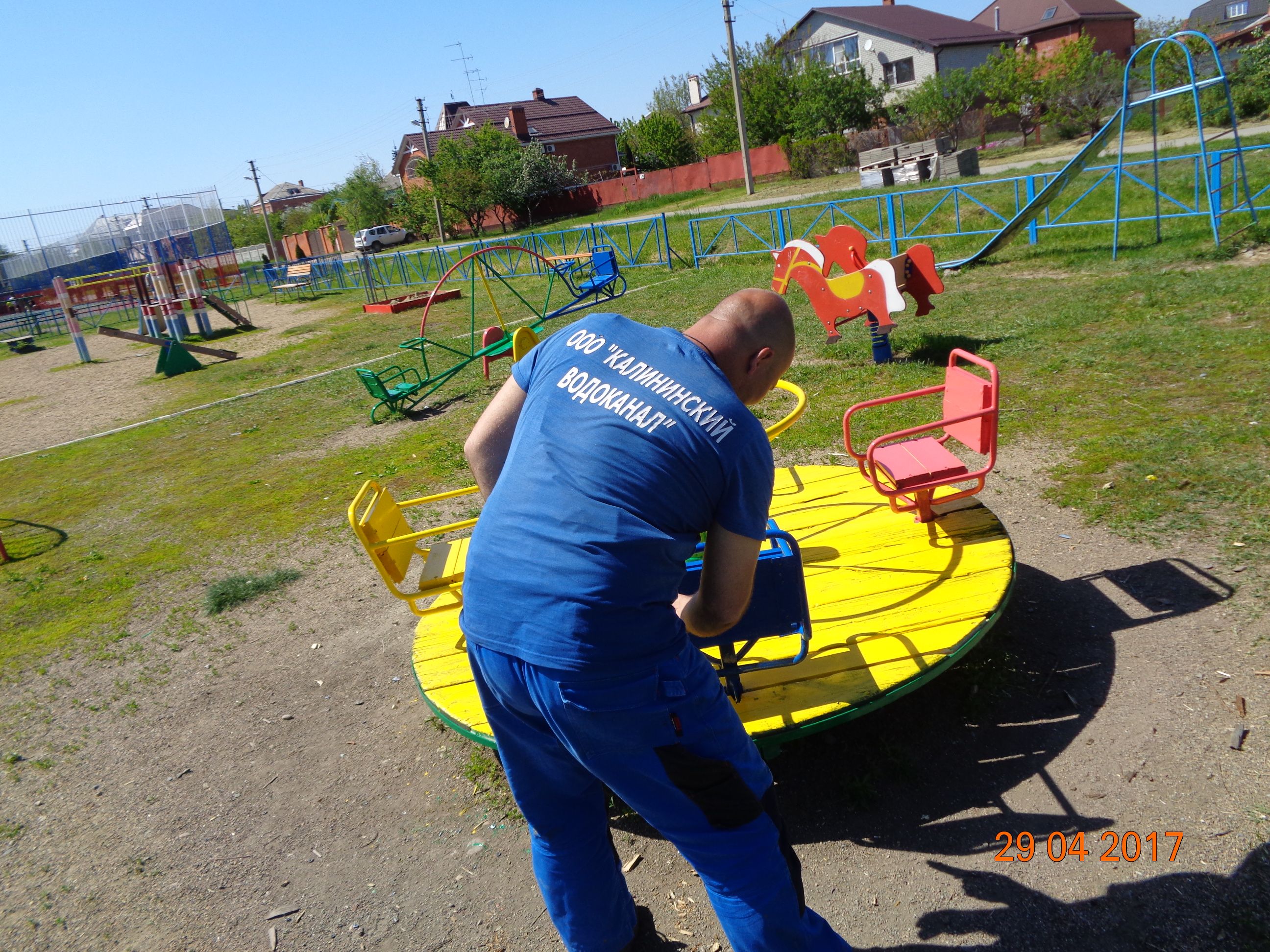 Работники ООО «Калининский водоканал» выполнил ремонт детской площадки расположенной по улице Листопадной, 14.