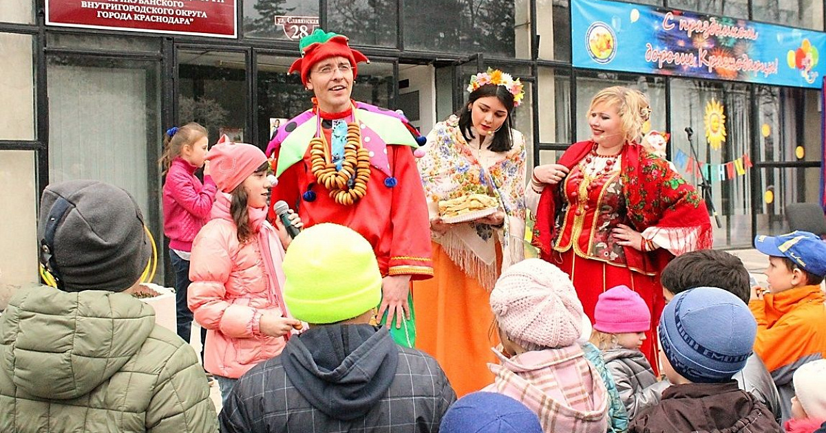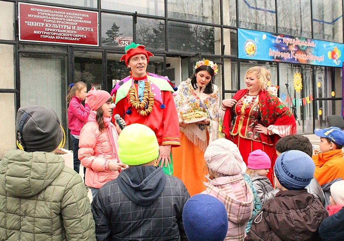 Конфетки, бараночки, блинчики румяные, а также море положительных эмоций ожидали всех пришедших в этот день к Центру культуры и досуга Прикубанского внутригородского округа города Краснодара.