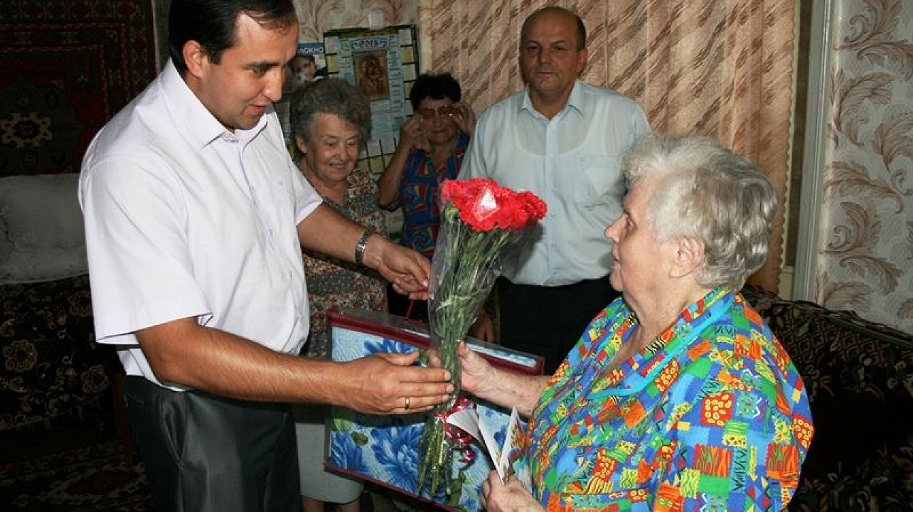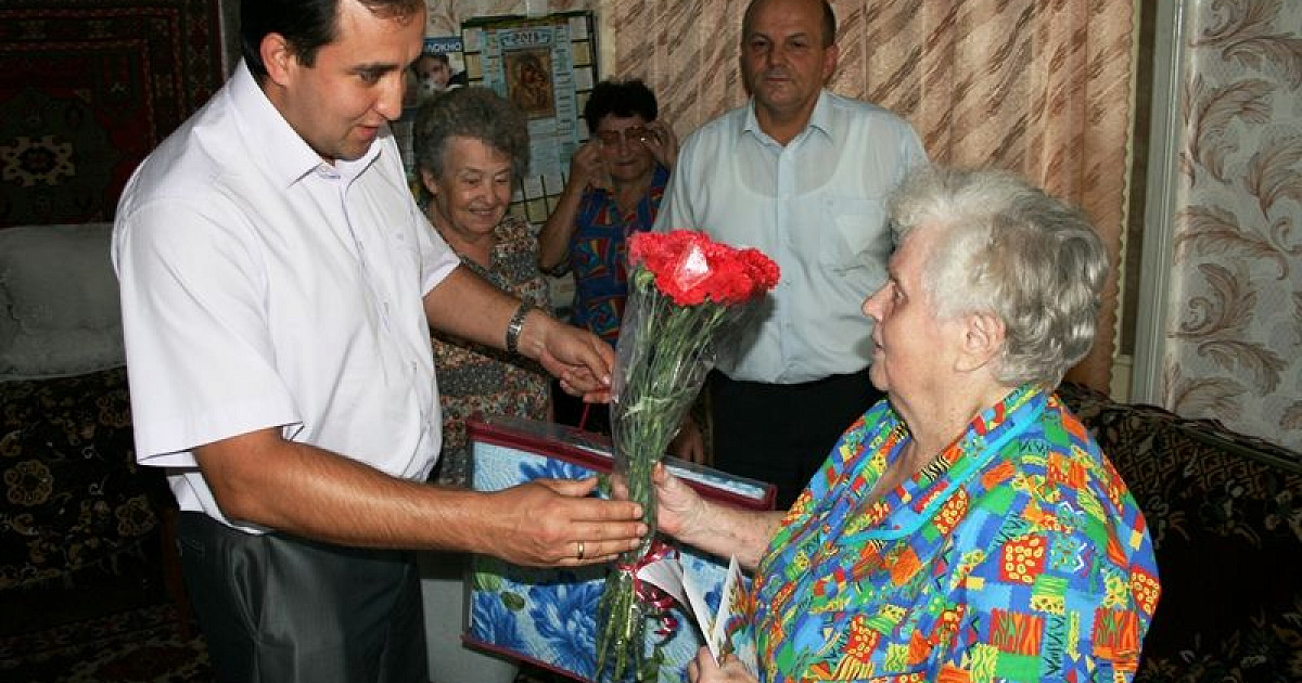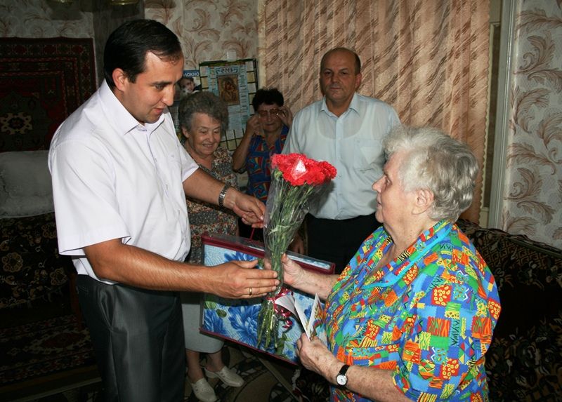 Добрыми словами, памятным подарком и письмом от имени Президента Российской Федерации ветерана поздравили заместитель главы администрации В.А.Игнатенко и специалист территориального центра №32 Славянский И.Ю.Ащеулов.