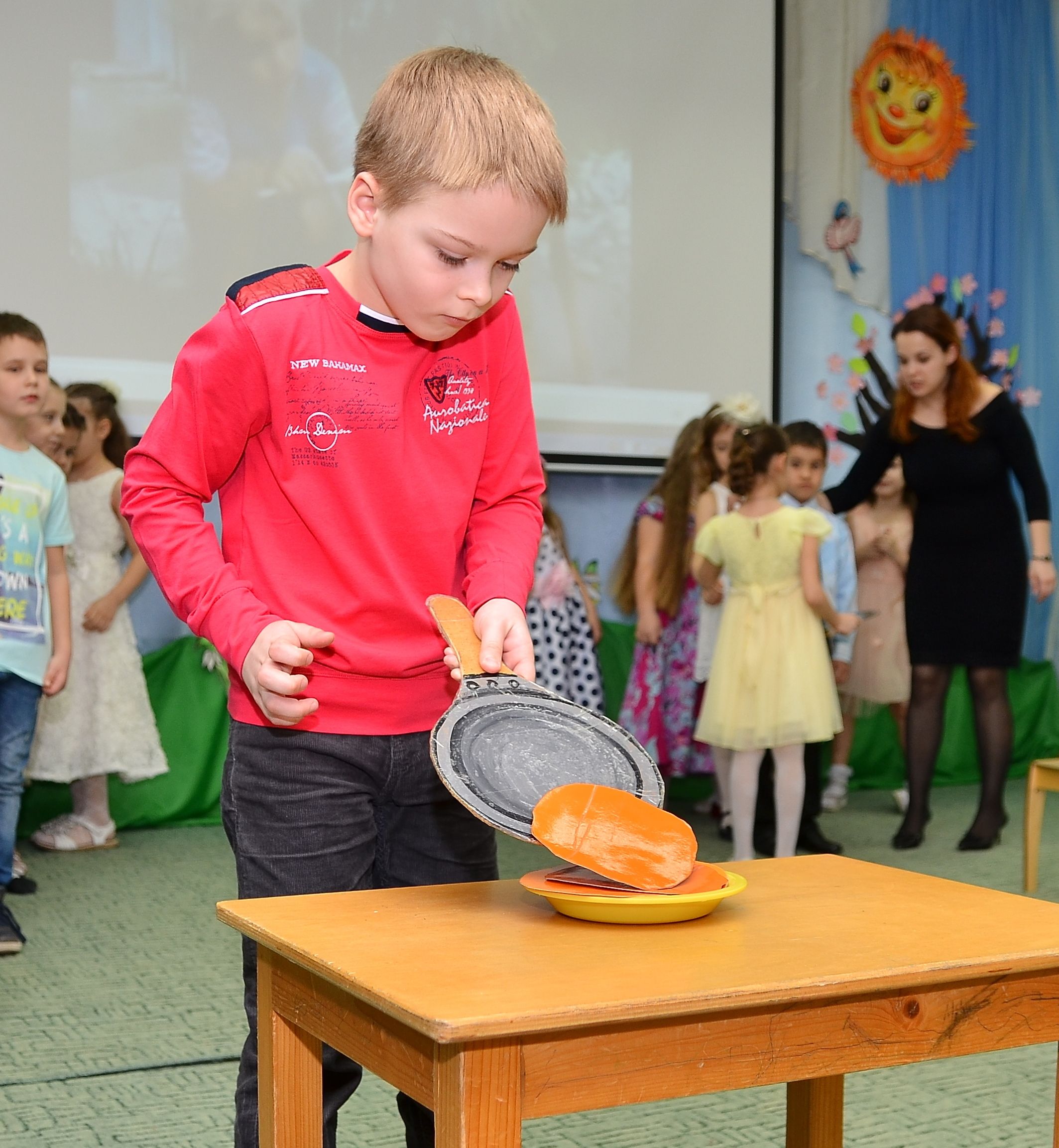 В концертную программу были включены веселые и забавные конкурсы «Цветок для мамы», «Повара», «Мамины помощники», «Блинчики». Каждый ребенок очень хотел порадовать своих мам и бабушек, которые были не просто зрителями, а самыми активными участниками праздника – пеленали младенцев, делали красивые и оригинальные прически своим дочкам, угадывали блюда по ингредиентам.