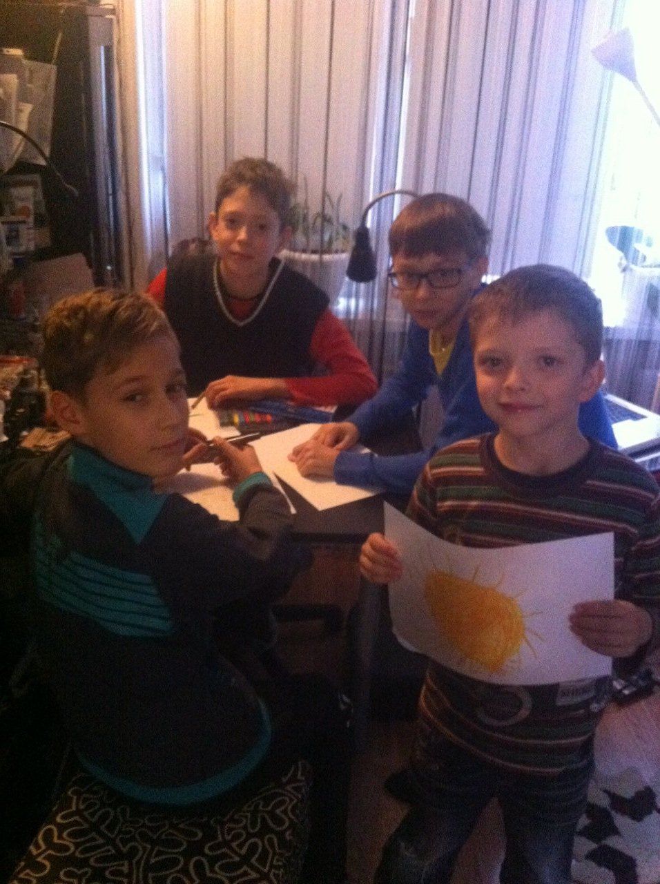 Ребята решили чаще принимать участие в общественных мероприятиях по месту жительства, ведь можно узнать много интересного о жизни старших людей, с кем живешь по соседству. Рисунки детьми к празднику двора готовились вместе с председателем ТОС №105 Виолеттой Фисенко.