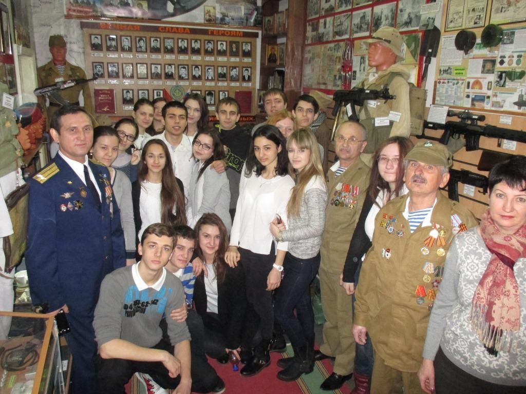 16 февраля 201550 ребят вместе с преподавателями Марией Осадченко и Светланой Шалаевой ознакомились с экспонатами музея, собранными афганцами Прикубанского округа.