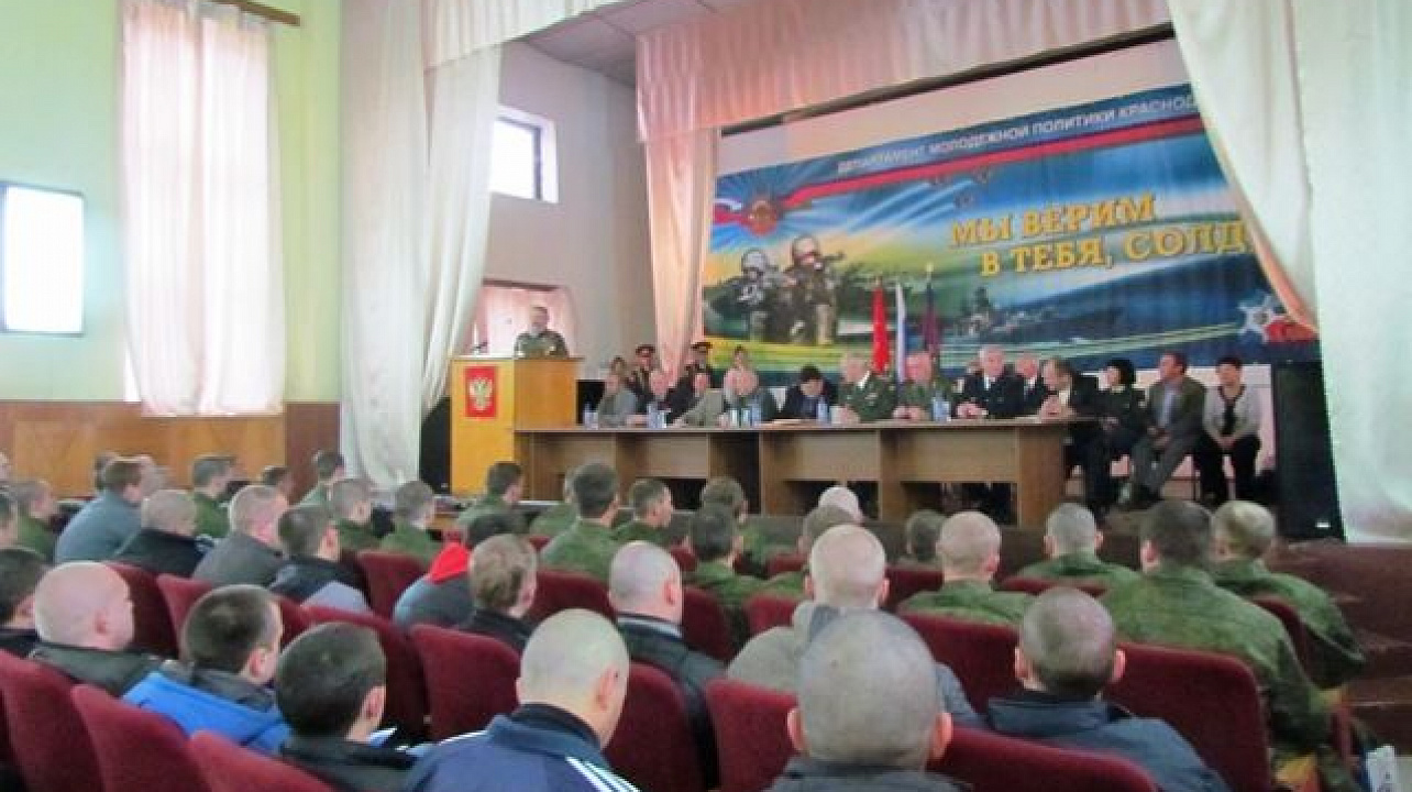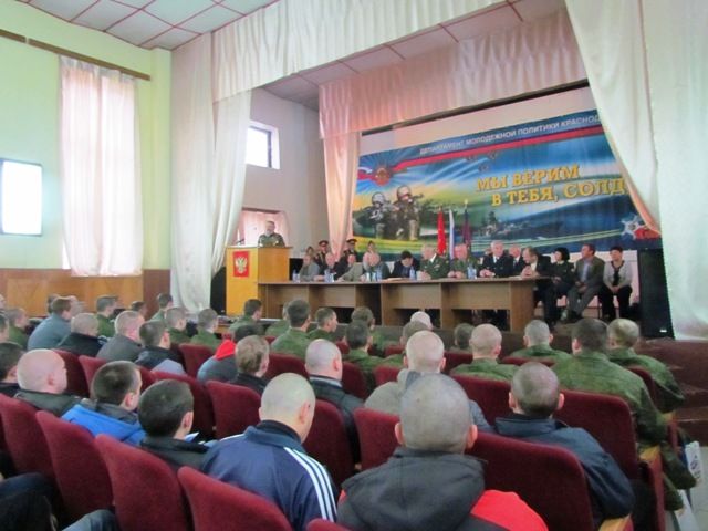 16 ноября 2012В краевом сборном пункте военного комиссариата Краснодарского края, который расположен в поселке 9-й километр, состоялась торжественная встреча, посвященная отправке воинов-кубанцев со всего края в полк Федеральной службы охраны Президента РФ и Всероссийскому Дню призывника.