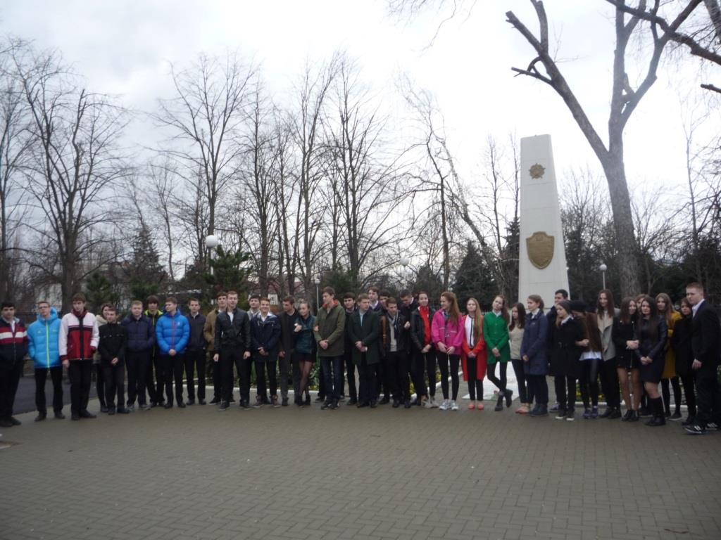 17 февраля 2015Классные руководители старшеклассников Устименко Г. В. и Самойловой Е. М. совершили увлекательную экскурсию «Подвиг застывший в камне» по историческим местам города Краснодара.