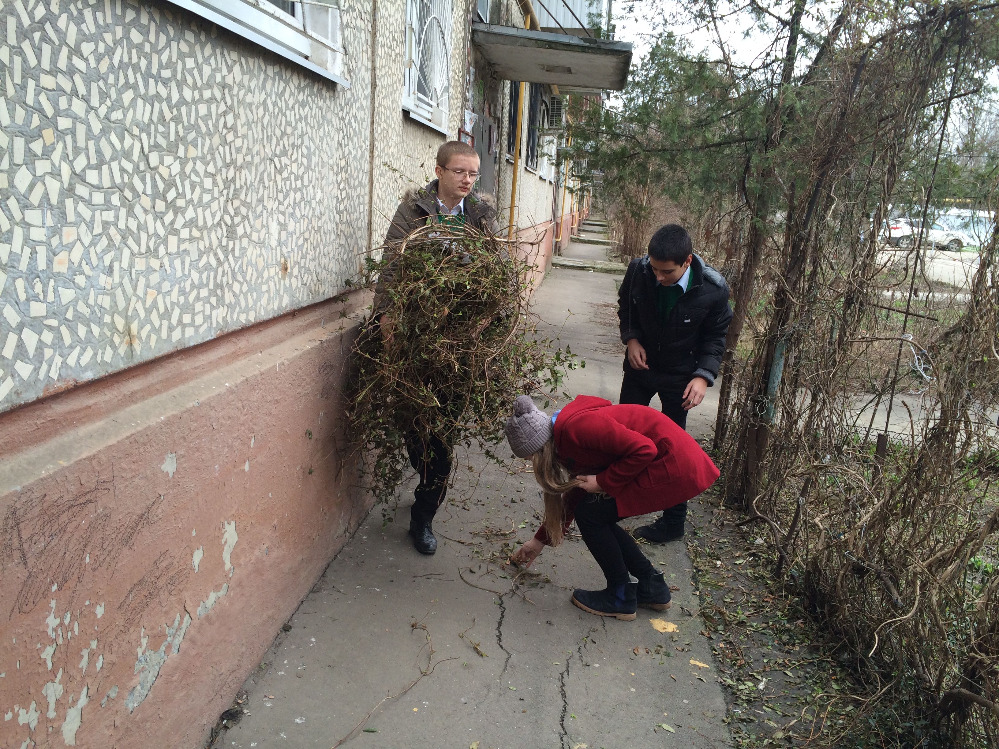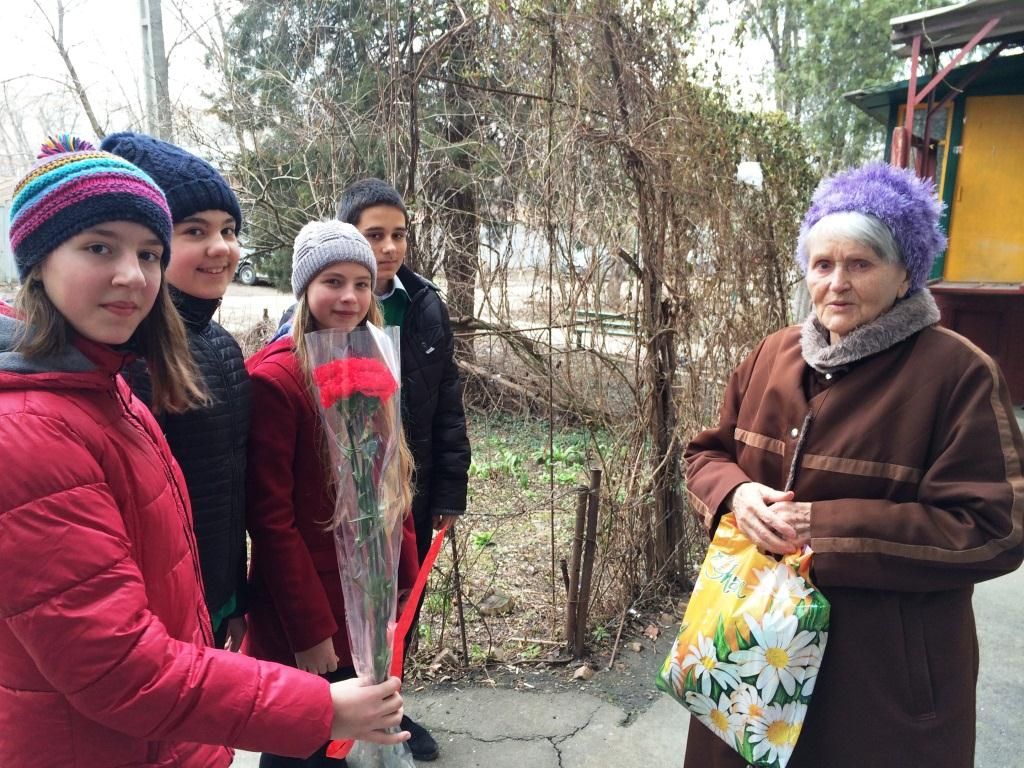 Во время месячника оборонно-массовой и военно-патриотической работы ребята-тимуровцы 7 «Б» класса поздравили с Днем освобождения Краснодара от немецко-фашистских захватчиков вдову участника войны, инвалида 1 группы по зрению Кравченко Любовь Федотовну и предложили ей свою помощь. Любовь Федотовна попросила ребят обрезать кустарник, так как он закрывал окна квартиры. Пока ребята трудились, ветеран труда рассказывала о трудном детстве в годы Великой Отечественной войны. Эта встреча никого не оставила равнодушным. Ребята пообещали Любови Федотовне весной навести полный порядок в палисаднике.