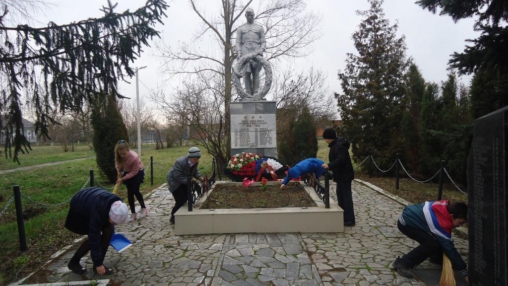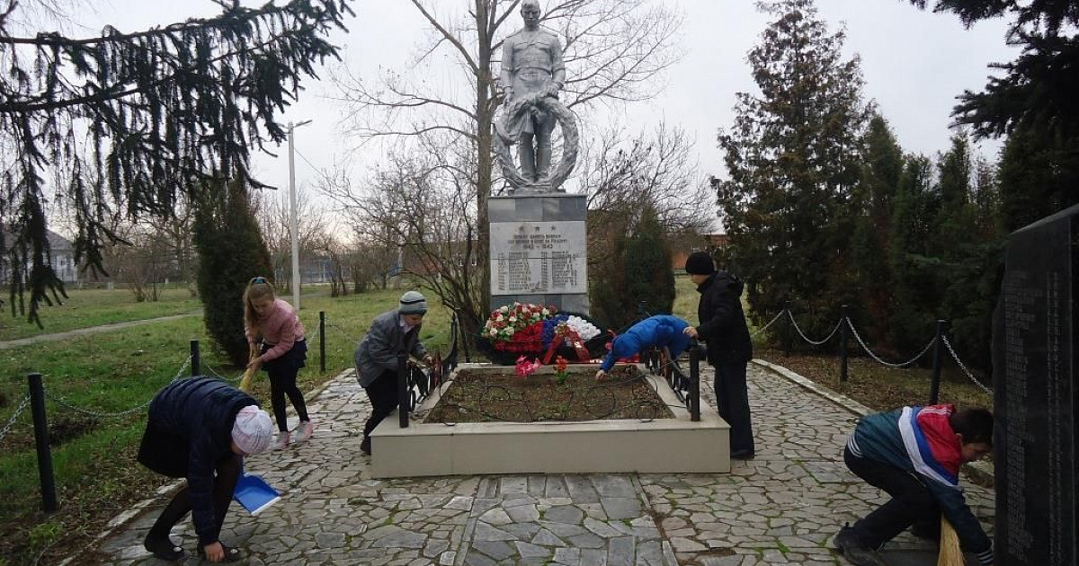 Сами ребята прошедшую на днях акцию назвали трудовым десантом у Братской могилы воинов, погибших за освобождение хутора Копанского. Ребята убрали опавшие листья и ветки, подмели, вымыли мраморную плиту.