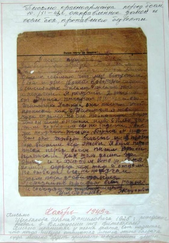18 февраля 2013В рамках акции «Весточка с фронта» школьник разыскал письмо бойца Щербакова Ивана, пропавшего без вести в 1943 году.