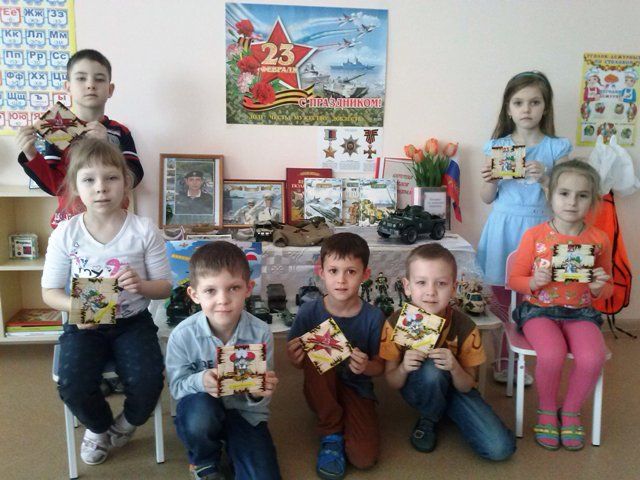 18 февраля 2015Конкурс на лучшую поздравительную открытку ко Дню защитника Отечества состоялся в рамках месячника оборонно-массовой и военно-патриотической работы. Вместе с родителями и воспитателями малыши также подготовили коллажи с изображением военной техники.