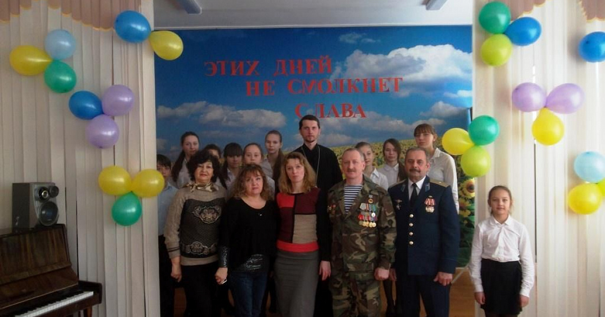 19 февраля 2015С учащимися встретились участники боевых действий в Афганистане майор ВВС Набожинский Н.А. и ветеран ВДВ Падалка А.П.