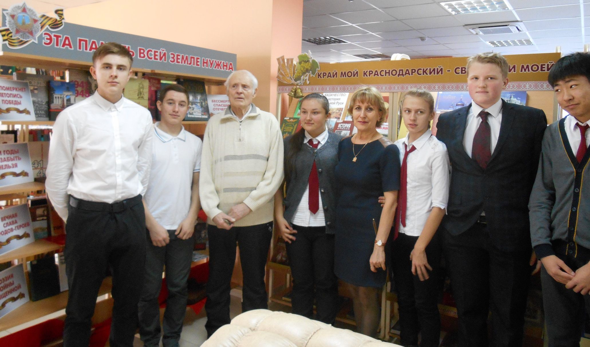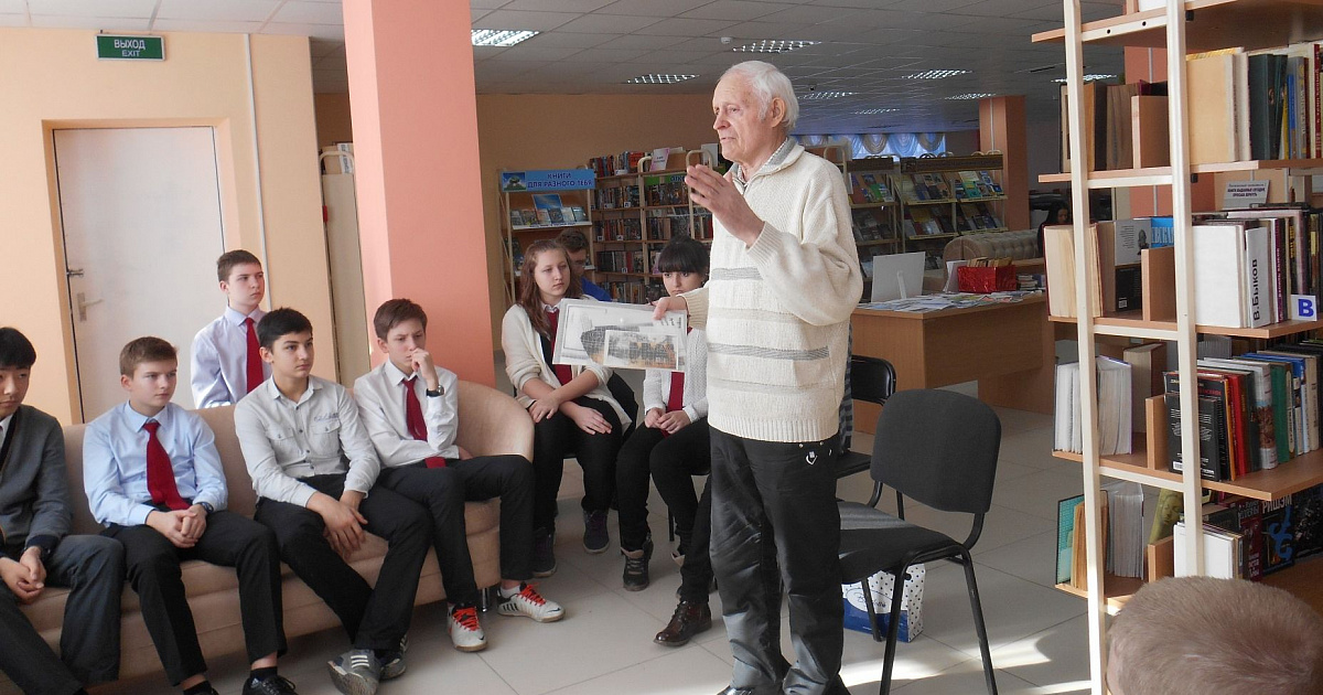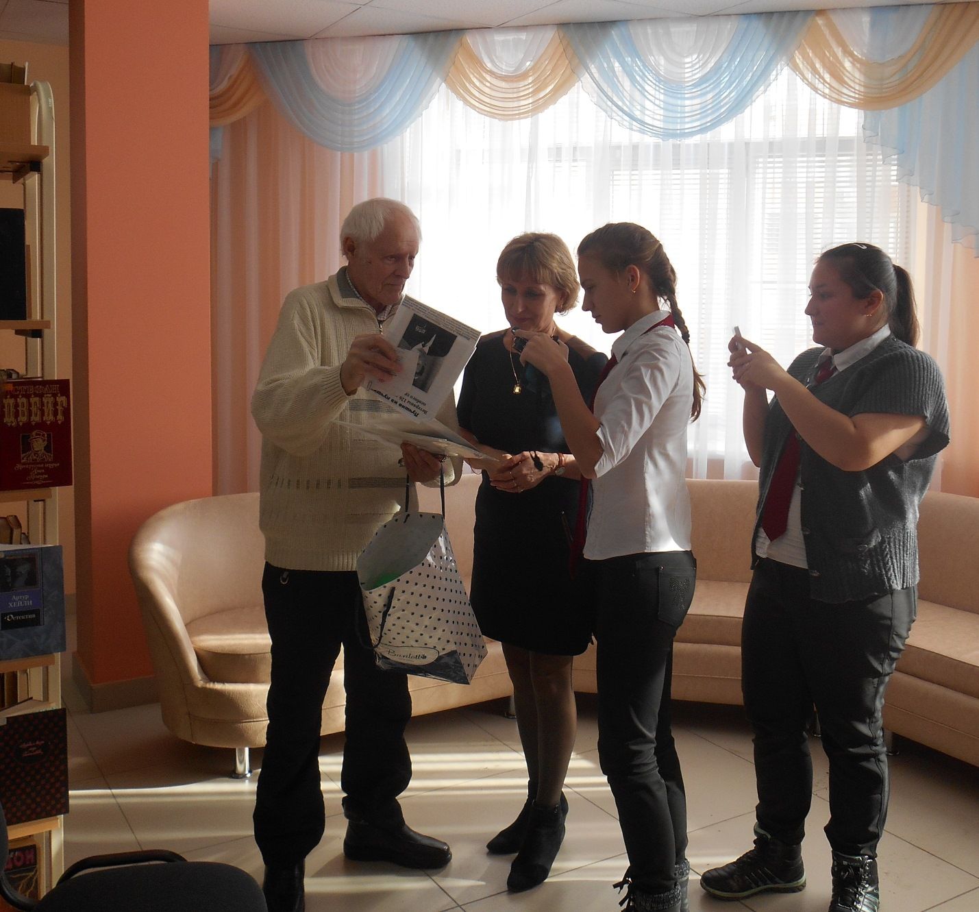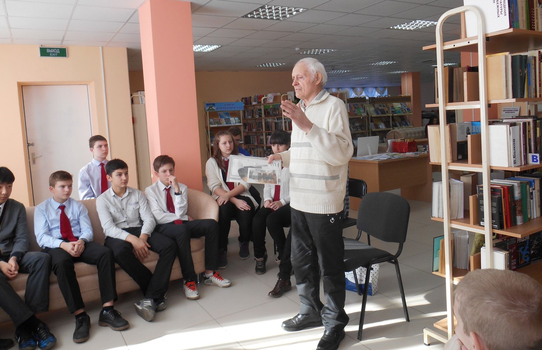 19 февраля 2015В рамках месячника оборонно-массовой и военно-патриотической работы «70-летие Победы – Великий праздник Великого народа» на базе библиотеки им. М. Горького прошла встреча учащихся 8 «А» класса с полярным летчиком Колмогоровым Владимиром Алексеевичем.
