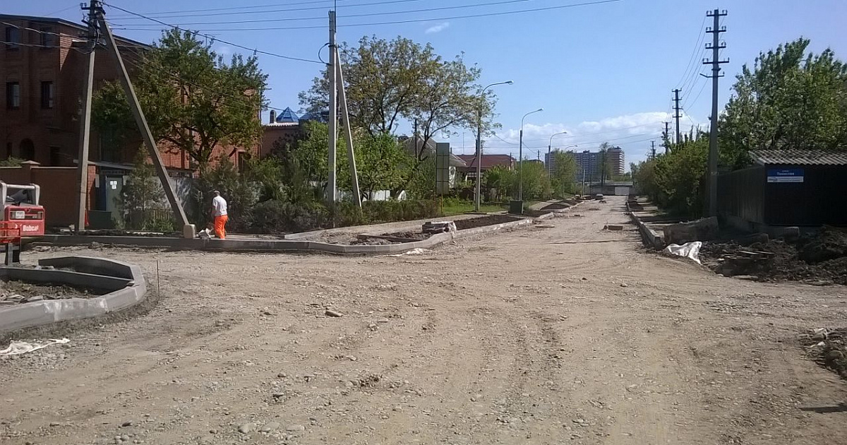 Подрядной организацией ООО НППФ «Краснодаравтодорсервис» проводятся работы по реконструкции ул. Бульвар Строителей от ул. Беговая до ул. Изобильная. Здесь будут выполнены работы по устройству асфальтобетонного покрытия проезжей части дороги, тротуаров, съездов, строительству ливневой канализации. Сейчас здесь устанавливают садовые бордюрные камни, выполняют устройство нижнего слоя основания и занимаются строительством ливневой канализации.