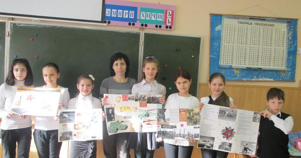Учащиеся 4Б стали победителями конкурса патриотических плакатов в школе №100 Прикубанского округа