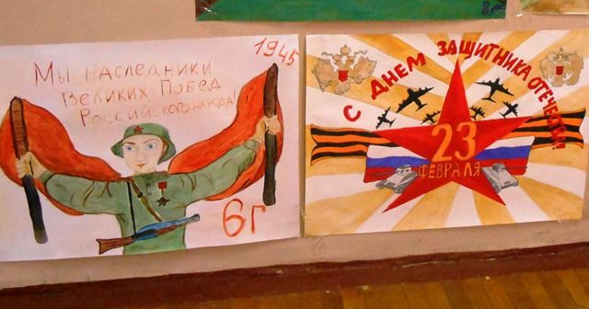 Самые талантливые ребята школы представили более 50 творческих работ на военно-патриотическую тематику. Они изображали солдат, памятники погибшим воинам, сцены ратных сражений, ветеранов и многое другое, а некоторые содержали поздравления и искренние пожелания защитникам Отечества.