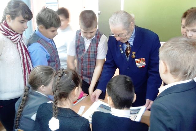20 февраля 2014Герман Дмитриевич Белов провел классный час с учениками 5 «Б». Он поделился своими воспоминаниями о войне, о своей работе в качестве инженера-испытателя в послевоенные годы. Школьники тоже рассказали ветерану о своих родственниках, принимавших участие в военных действиях. Встреча настолько понравилась ребятам, что они пообещали Герману Дмитриевичу посетить его персональную выставку, посвященную Дню космонавтики.