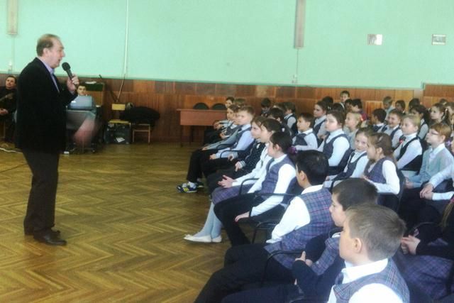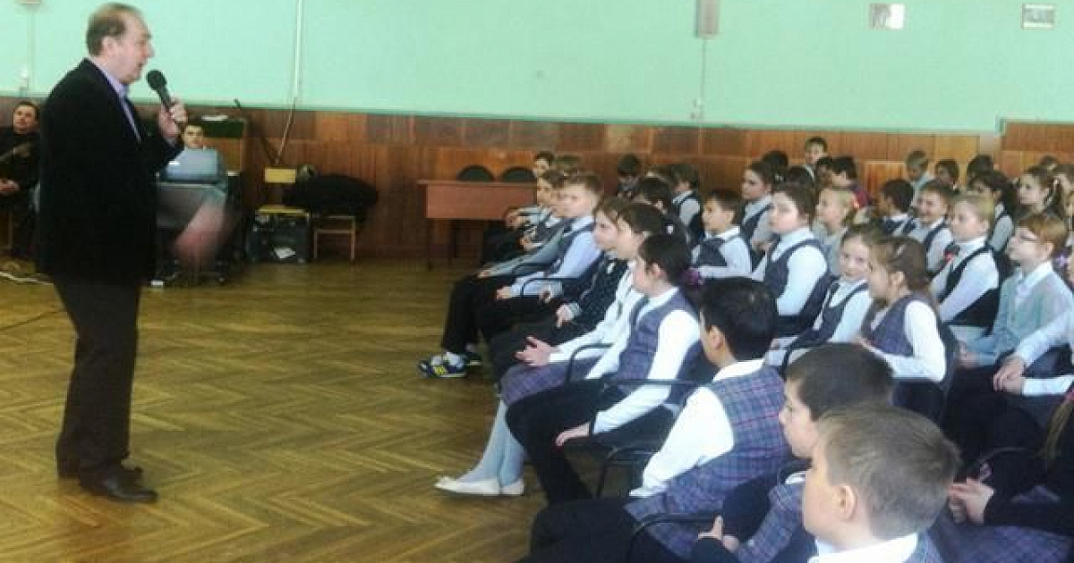 На нем присутствовали учащиеся четвертых и седьмых классов. Литературно-музыкальная композиция «Поэты о войне и мире» в исполнении актеров театра вызвала живой отклик у детей, а финальную песню «Катюша» пел хором весь зал.