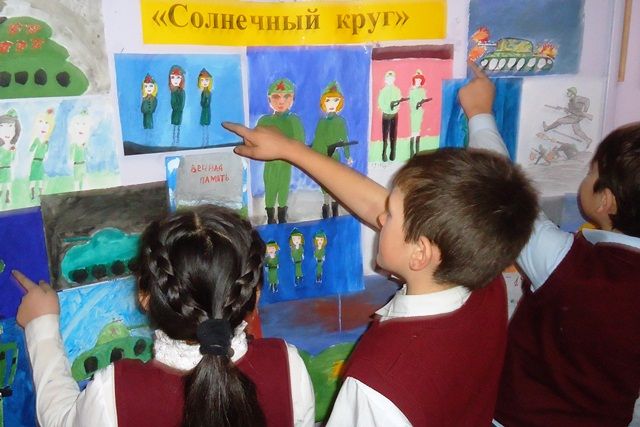Они организованы в рамках месячника военно-патриотической работы. К примеру, 1-9 классы украсили актовый зал школы рисунками. Выставка-конкурс «Солнечный круг» вызвала большой интерес не только у ребят, но и у их родителей.