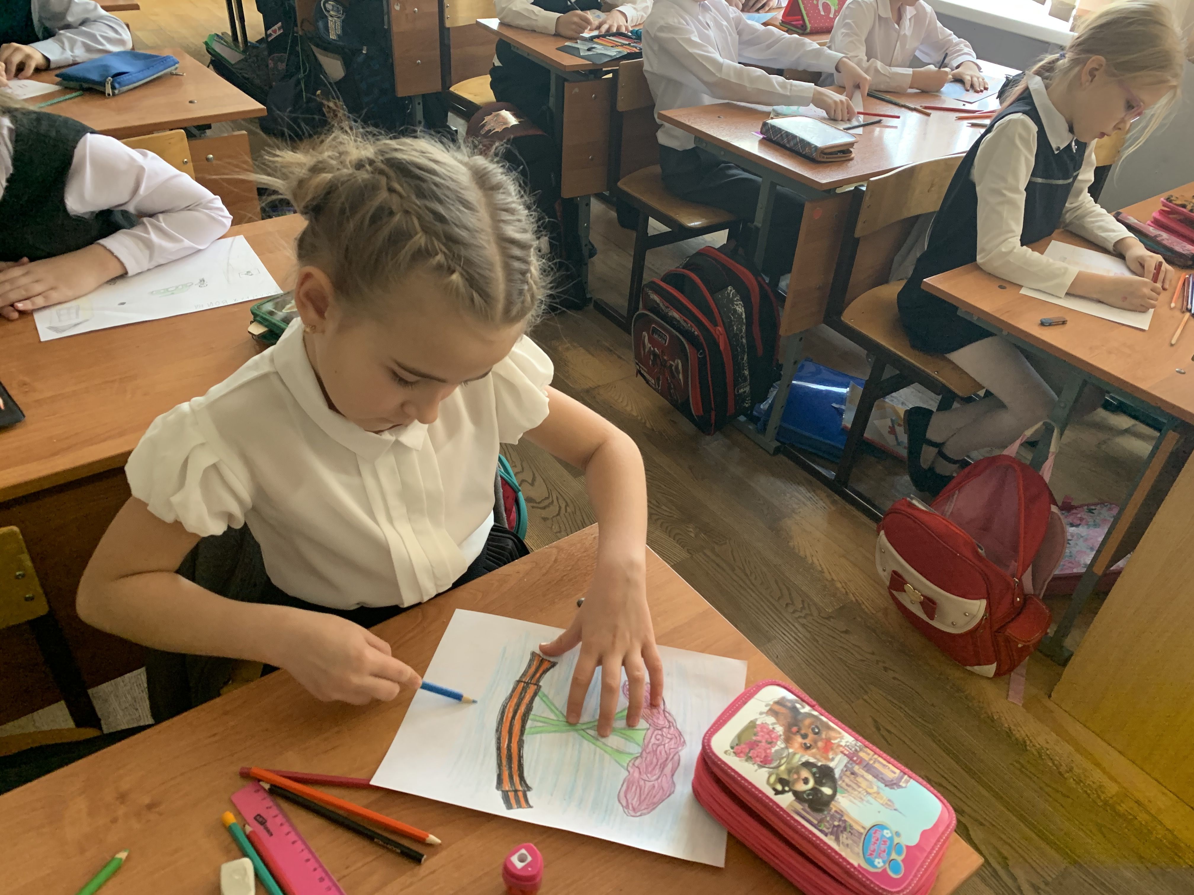 «Пусть всегда будет мир!», именно на эту тему школьники выполняли конкурсные работы, изобразили военные действия, самолеты, танки, ветеранов, цветы и мир без войны. Их работы можно увидеть на выставке в нашем центре культуры и досуга.