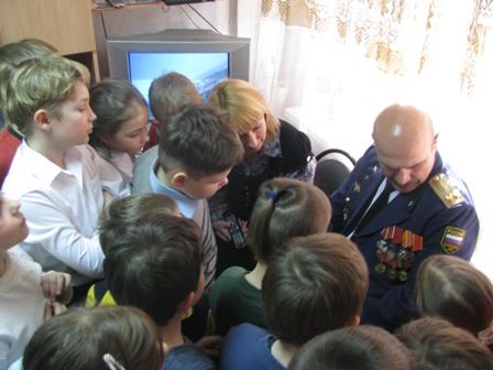 Подполковник в запасе Хованский В.М. рассказал детям о том как выполнял воинский долг и с 1994 по 1998 год 8 раз был командирован на Северный Кавказ, с 1991 года служил в Абхазии и Таджикистане, а с 1998 года - в самой северной точке Советского союза — в Заполярном круге, городе Тикса. Рассказал о полярной ночи и о полярном дне, которые длятся по полгода и какие лишения пришлось пережить на службе, рассказал о погибших товарищах, показал интересные фотографии и ордена, полученные за боевые заслуги.