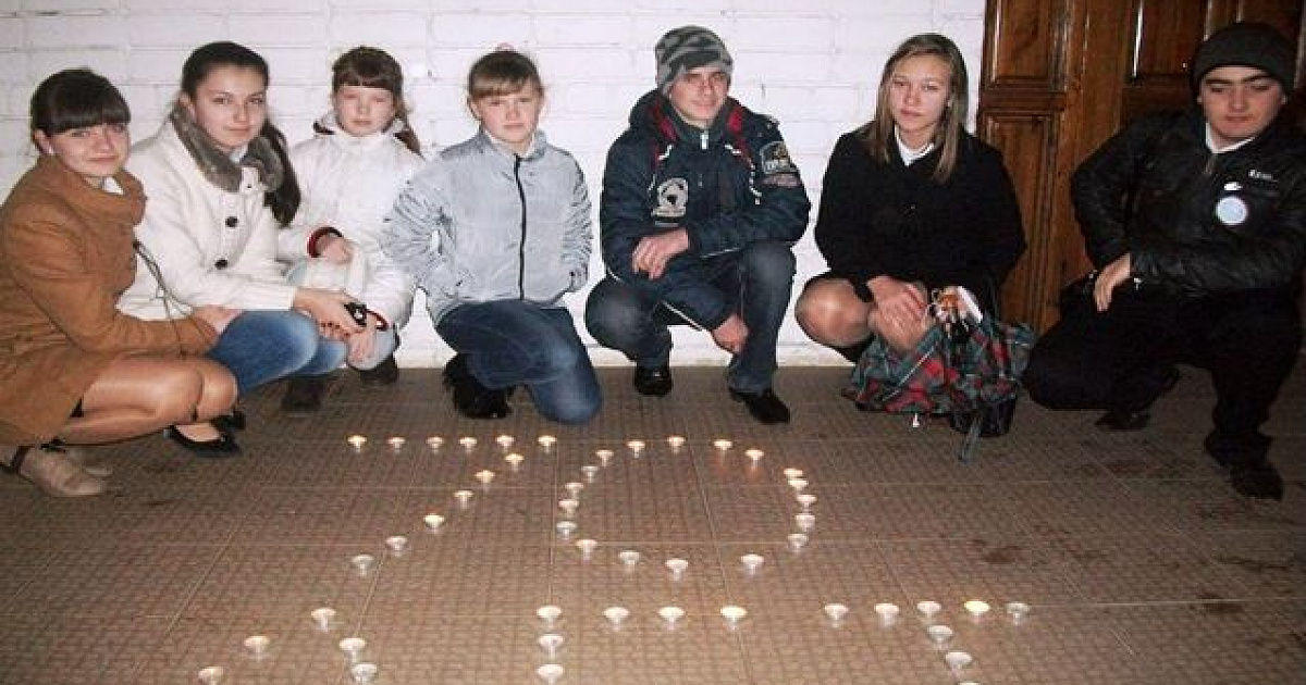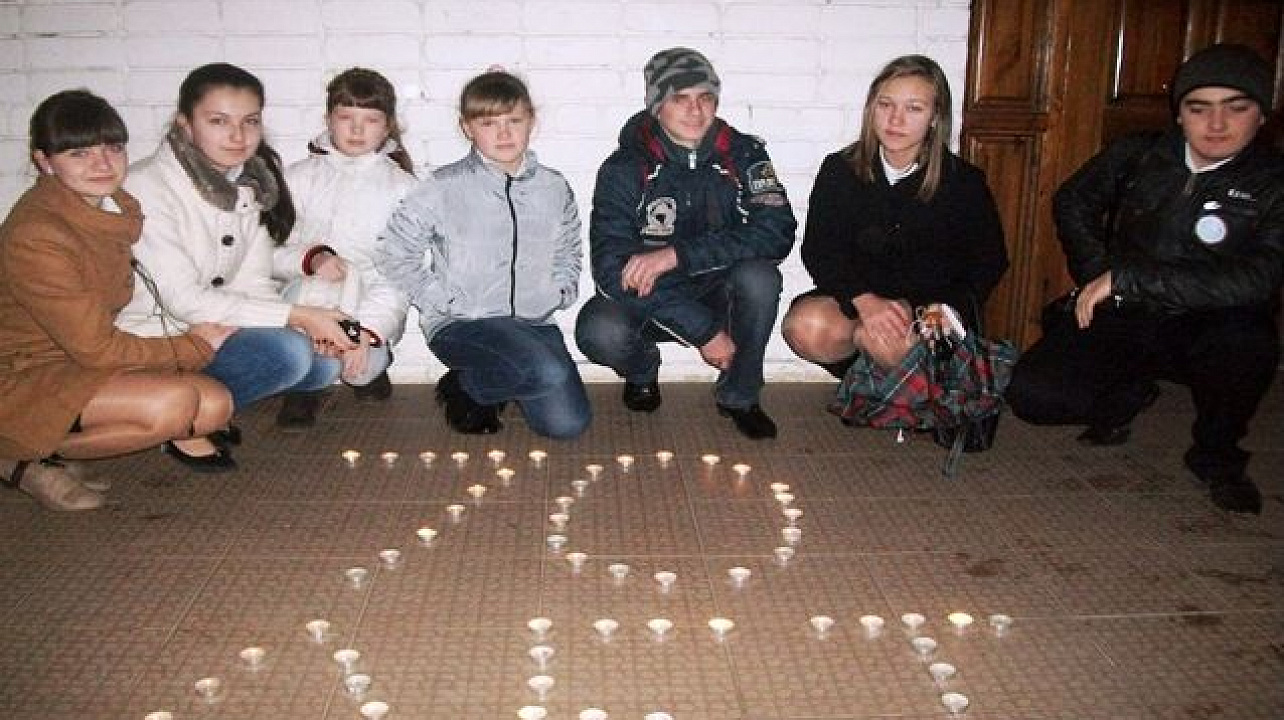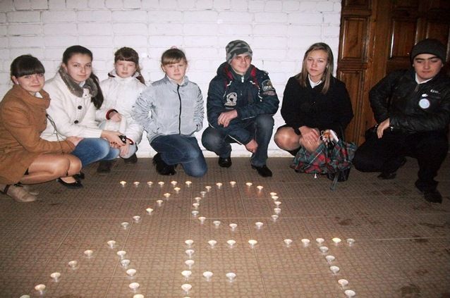 В 7.30 утра школьники зажгли свечи, выложенные у входа в школу так, чтобы надпись «70 лет» не осталась незамеченной. После чего тимуровский отряд развесил поздравительные листовки по микрорайону.