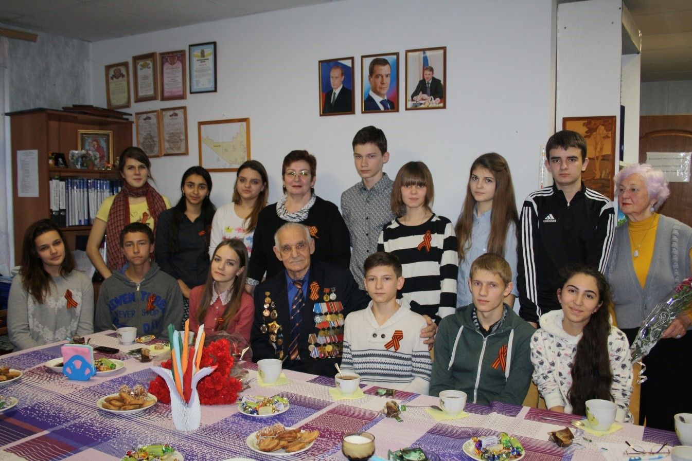 «Теперь его грудь украшают несколько десятков боевых наград, а мы надели «георгиевские» ленточки, чтобы в будущем стать достойными наследниками поколения победителей», - говорят школьники.