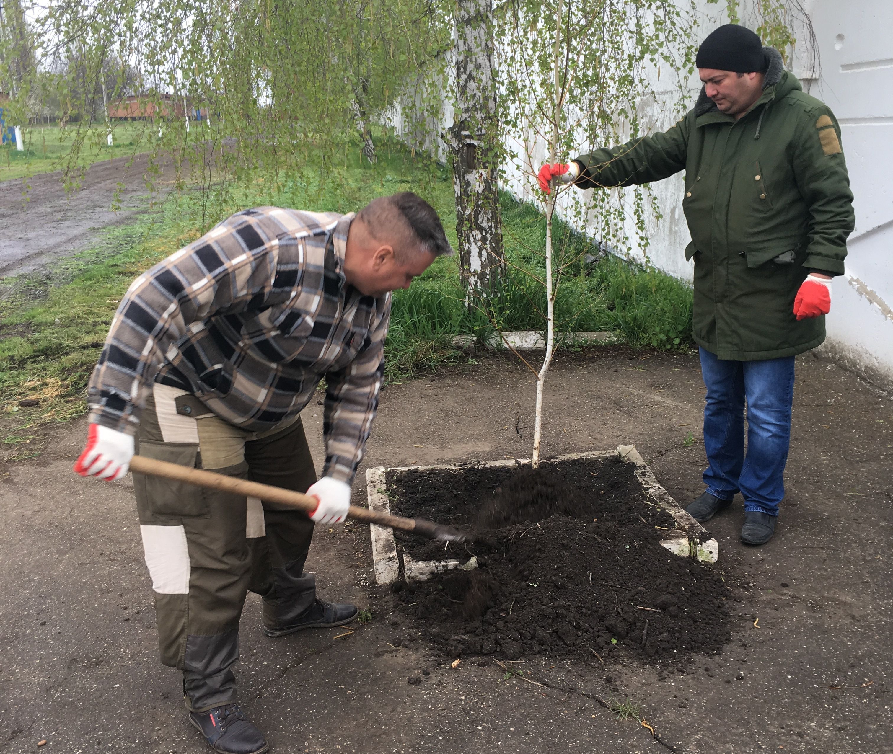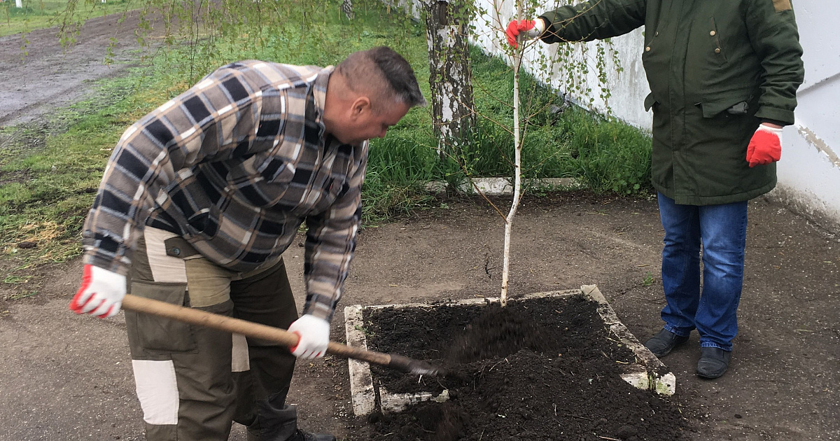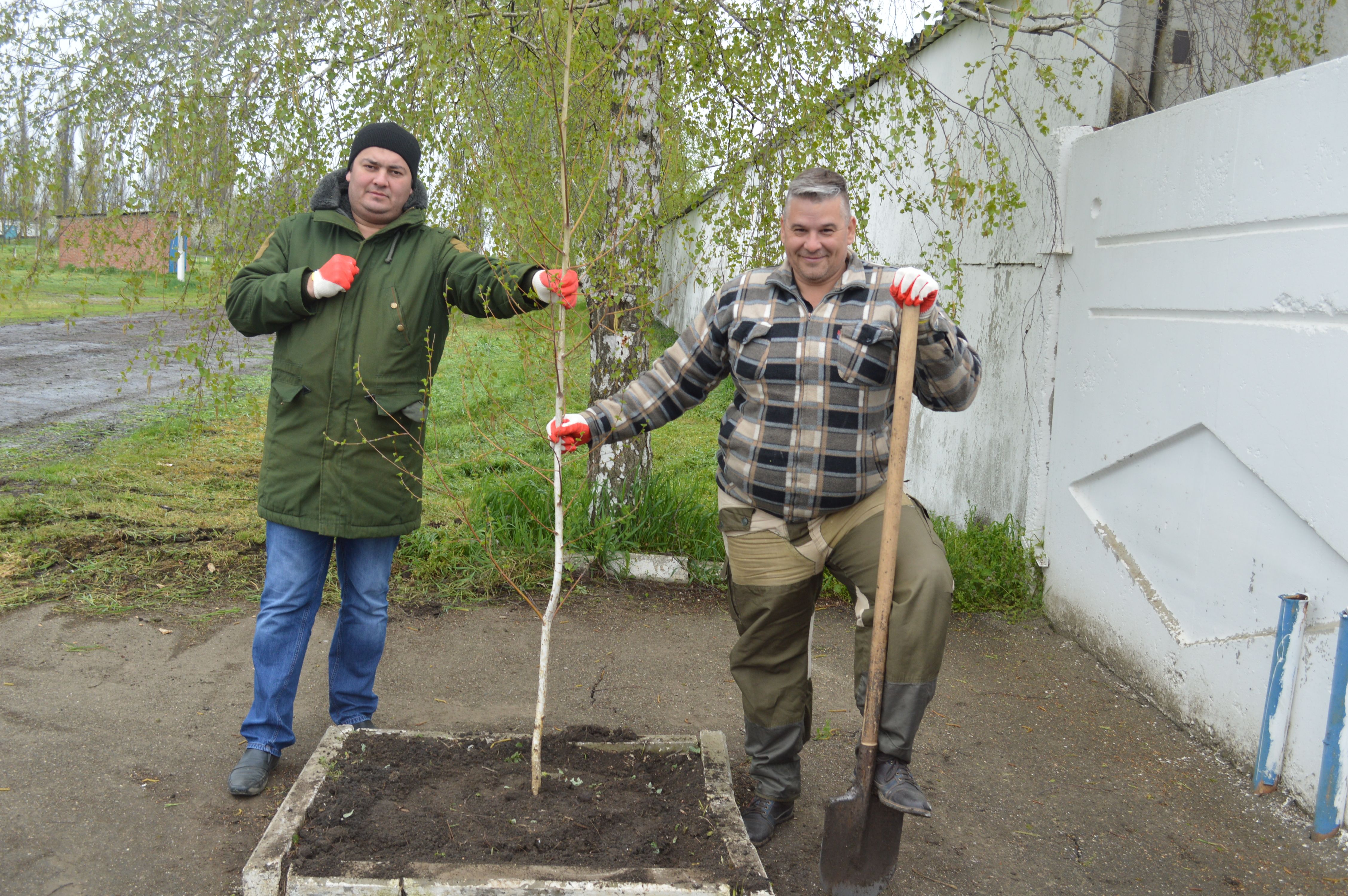Директор ОПХ «Центральное» Анатолий Момот вместе с коллегами высадил десять берёз у административного здания предприятия в посёлке Водники.