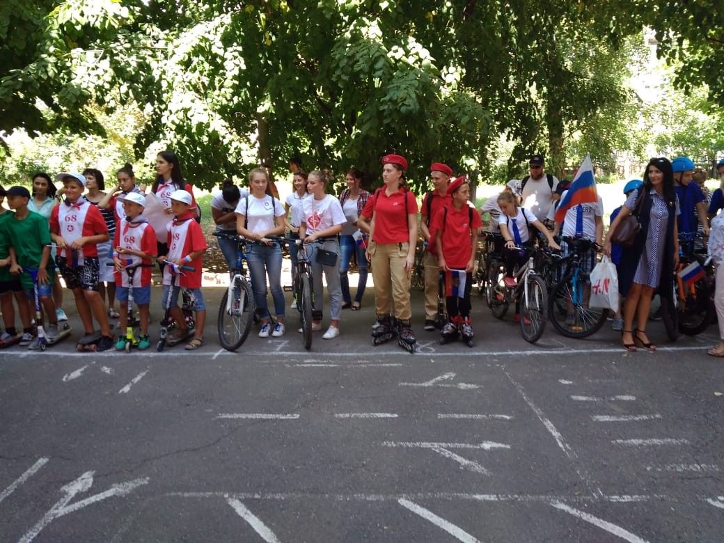 С территории МБОУ СОШ № 80 стартовал окружной велопробег, участники которого были не только на велосипедах, но так же на скейтбордах, самокатах и роликах. В финале ребята собрались на митинг в сквере «Фестивальный», который завершился запуском белых, синих и красных шаров под песню «Россия, мы дети твои».