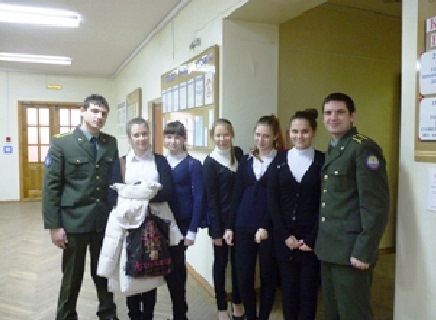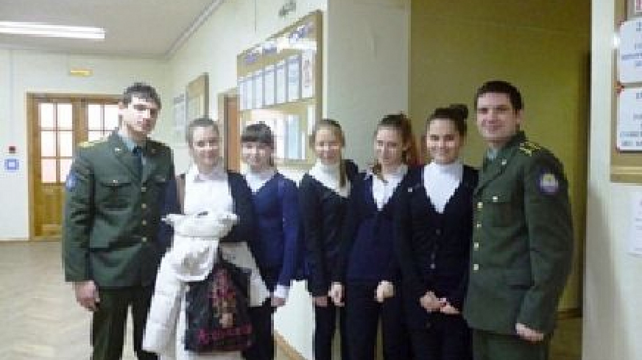 23 февраля 2012С историей Ейского высшего военного авиационного училища школьников познакомили курсанты.