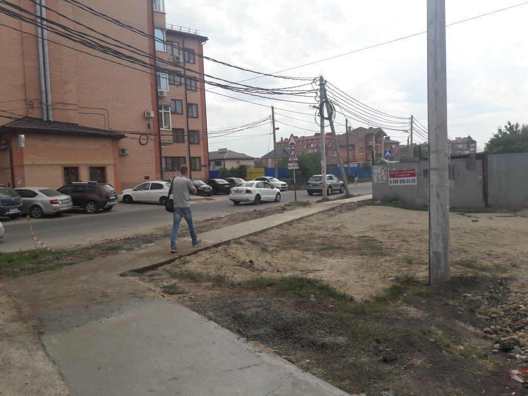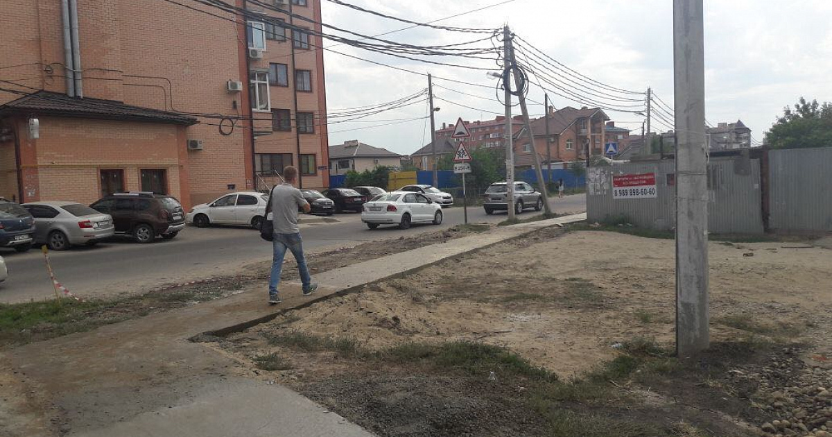 В «Музыкальном» микрорайоне Краснодара завершили строительство тротуара по ул. Гомельской