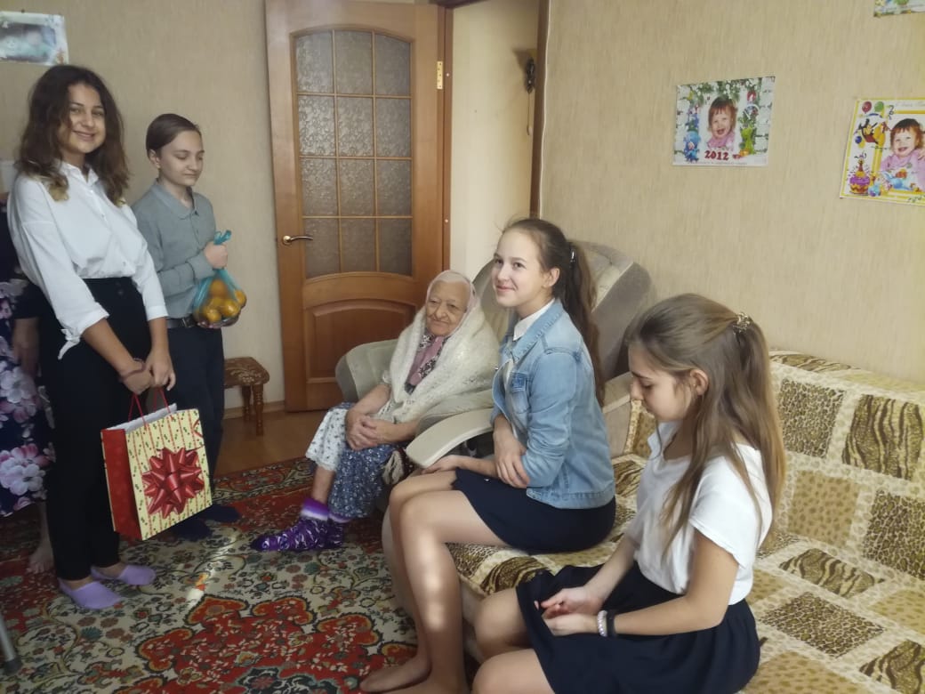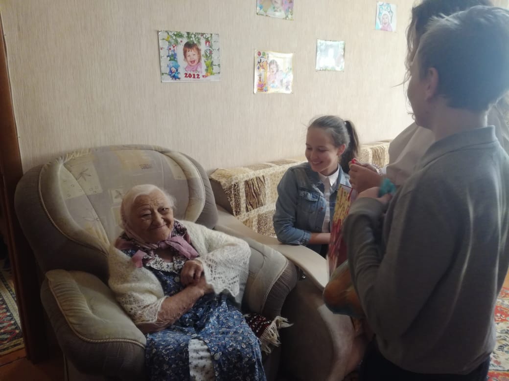 Со значимой датой Анну Тимофеевну Калиберденко поздравили члены волонтерского добровольческого отряда «Искра» (школа № 72), а также специалист территориального центра № 25 Ольга Маркова.