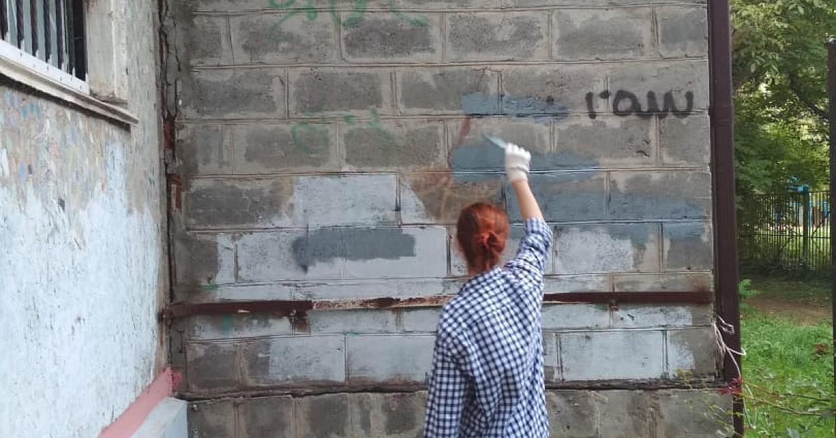 Молодежь, вооружившись краской с кисточками, отправились на территорию микрорайона Фестивальный, где закрашивали на стенах жилых домов, заборах надписи Интернет-ресурсов пронаркотического содержания.