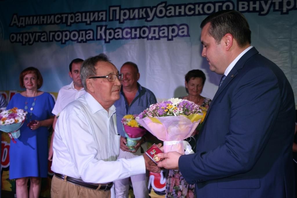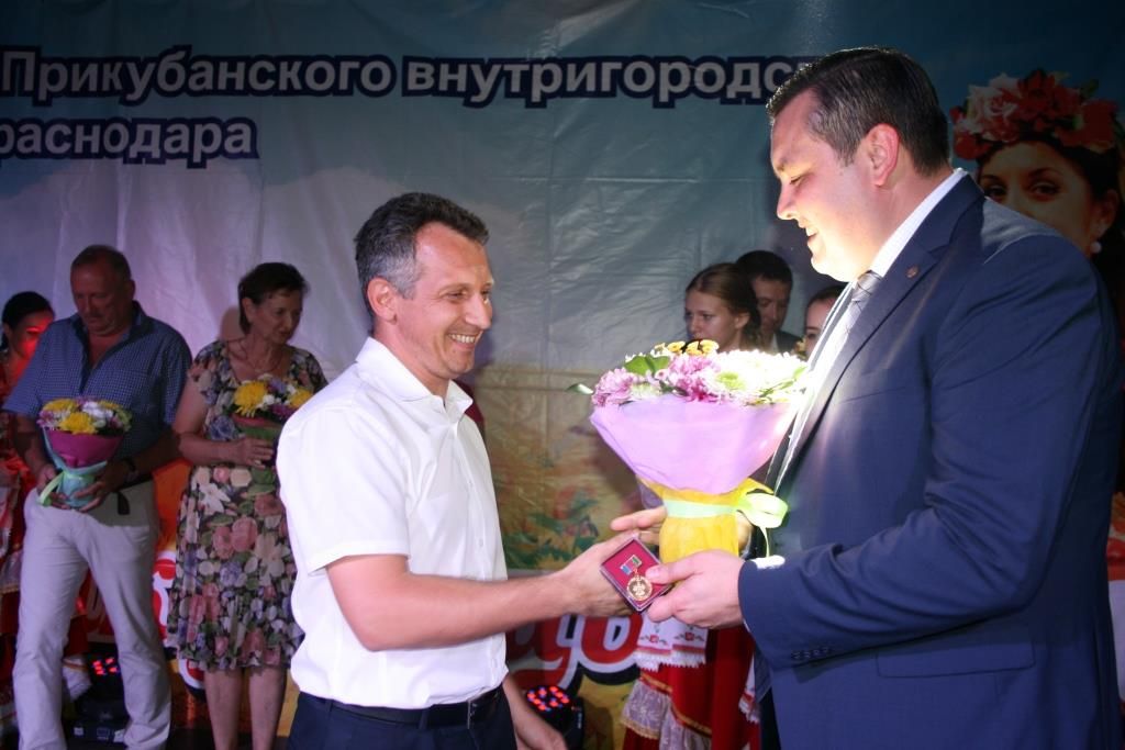 Открылся окружной праздник «Мой край и город – моя судьба» запуском отремонтированного фонтана. Андрей Дорошев поблагодарил предпринимателя Александра Агеева за безвозмездный вклад в благоустройство Фестивального микрорайона, отметив, что предприниматель сам обратился с предложением реконструировать фонтан. В честь праздничной даты Александру Агееву и другим меценатам, оказывавшим помощь пожилым жителям Прикубанского округа в этом году, глава окружной администрации Андрей Дорошев вручил памятные медали и благодарственные письма. В частности, исполнительному директору ООО «Регион-Транс» Филинович Дмитрию Владимировичу, директору ООО «Транзит-Авто» Саркисову Григорию Эдуардовичу и директору ООО НПП «Флореаль» Щербакову Ивану Дмитриевичу.