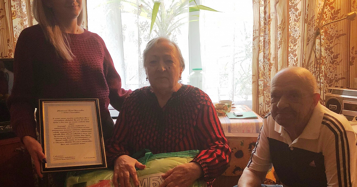 Депутат городской Думы Краснодара Галина Ермакова поздравила супругов-юбиляров с 55-летием совместной жизни