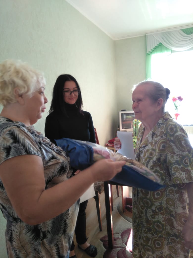 Они вручили имениннице памятный подарок и персональное поздравление от Президента Российской Федерации.