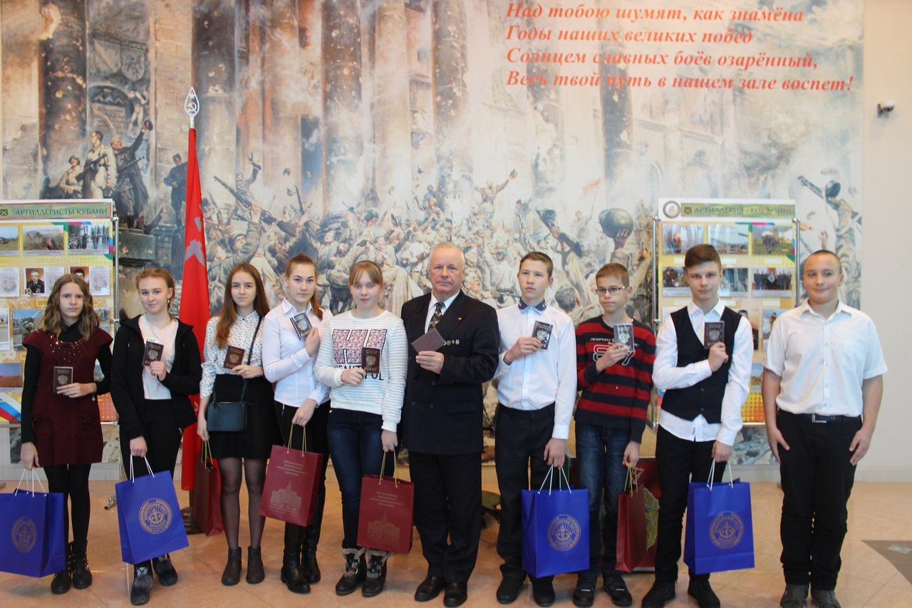 Вместе с первым документом ребята также получили напутственное слово от председателя Прикубанской окружной организации Краснодарской краевой общественной организации ветеранов войны, труда, Вооруженных сил и правоохранительных органов Владимира Иваницкого. Кроме того, ребятам вручили ценные подарки и провели для всех желающих экскурсию по музею.