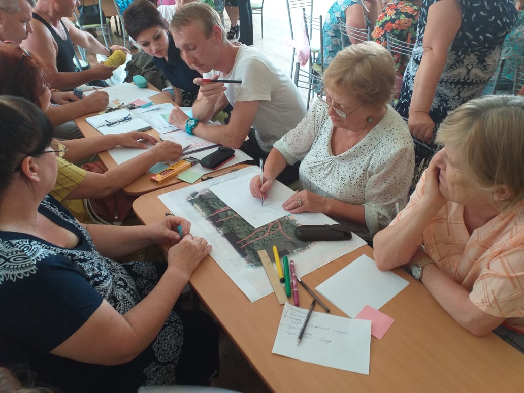 Разбившись на четыре группы, «команды» подготовили проекты благоустройства территории, включающие в себя строительство храма, фонтанного комплекса, летнего кинотеатра, детской игровой площадки, а также прогулочной зоны и зоны для выгула собак.