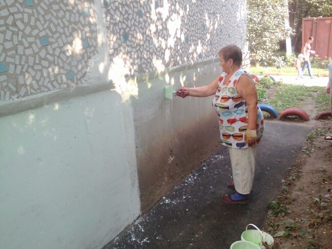 На уборку некоторые местные жители выходили семьями — с детьми и внуками. Вместе они покрасили качели и горку на детской площадке, а также фасады домов.
