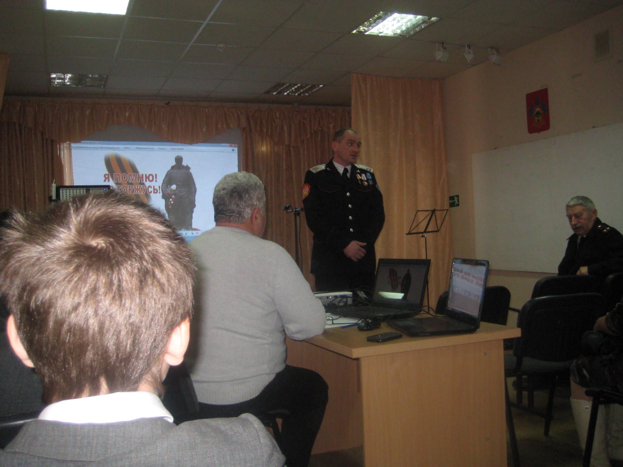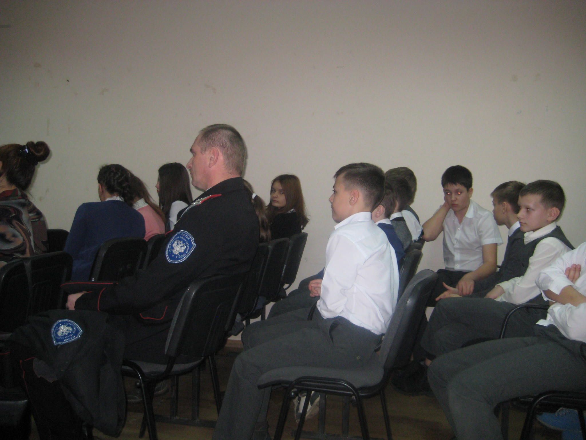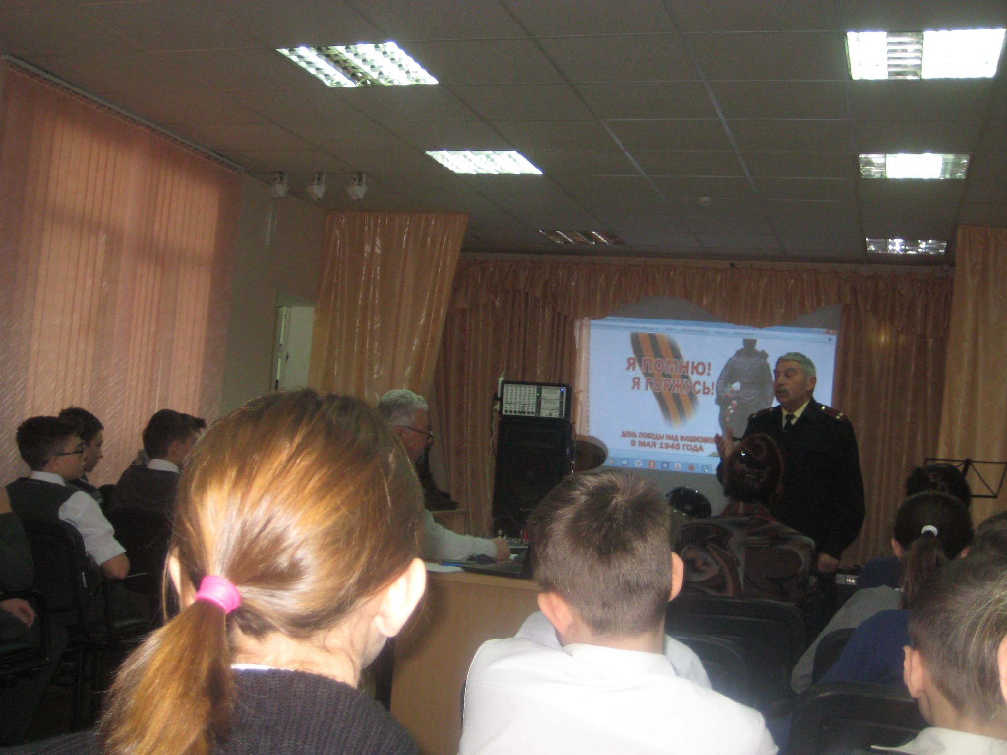 На линейке присутствовали гости: председатель Совета ветеранов посёлка Колосистый Шебалин Виктор Максимович и ветеран вооружённых сил, подполковник запаса Житомирский Борис Александрович.