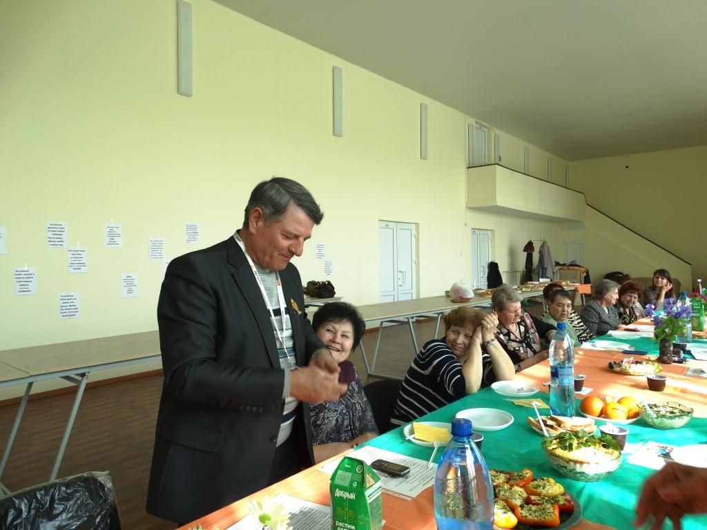 Во встрече приняли участие депутат городской Думы Краснодара Ольховая Анна Васильевна, помощники депутата, специалисты территориального центра, председатель профкома и ветераны, а также поделиться опытом пришли члены городской общественной организации «Милосердие». На этот раз конкурс проходил под названием «Золотая рыбка». На заседание клуба собралось более 30-ти человек. Это все бывшие и настоящие сотрудники ВНИИМКа, все жители Школьного микрорайона. Заседание клуба открыла председатель организации Гусева Т.Е., она прочитала лекцию о рыбе и ее пользе организму. А затем каждый участник презентовал свое блюдо. В перерывах между дегустацией читали стихи. Избранное жюри, куда избрали одних мужчин, оценивало по 100-балльной системе. На столах были всякие разносолы, чего только хозяюшки не придумали: рыба заливная, разные бутерброды, закусочные торты, салаты, пироги с рыбой и многое другое. Благодаря поддержке нашего депутата Анны Ольховой все участники конкурса получили призы.